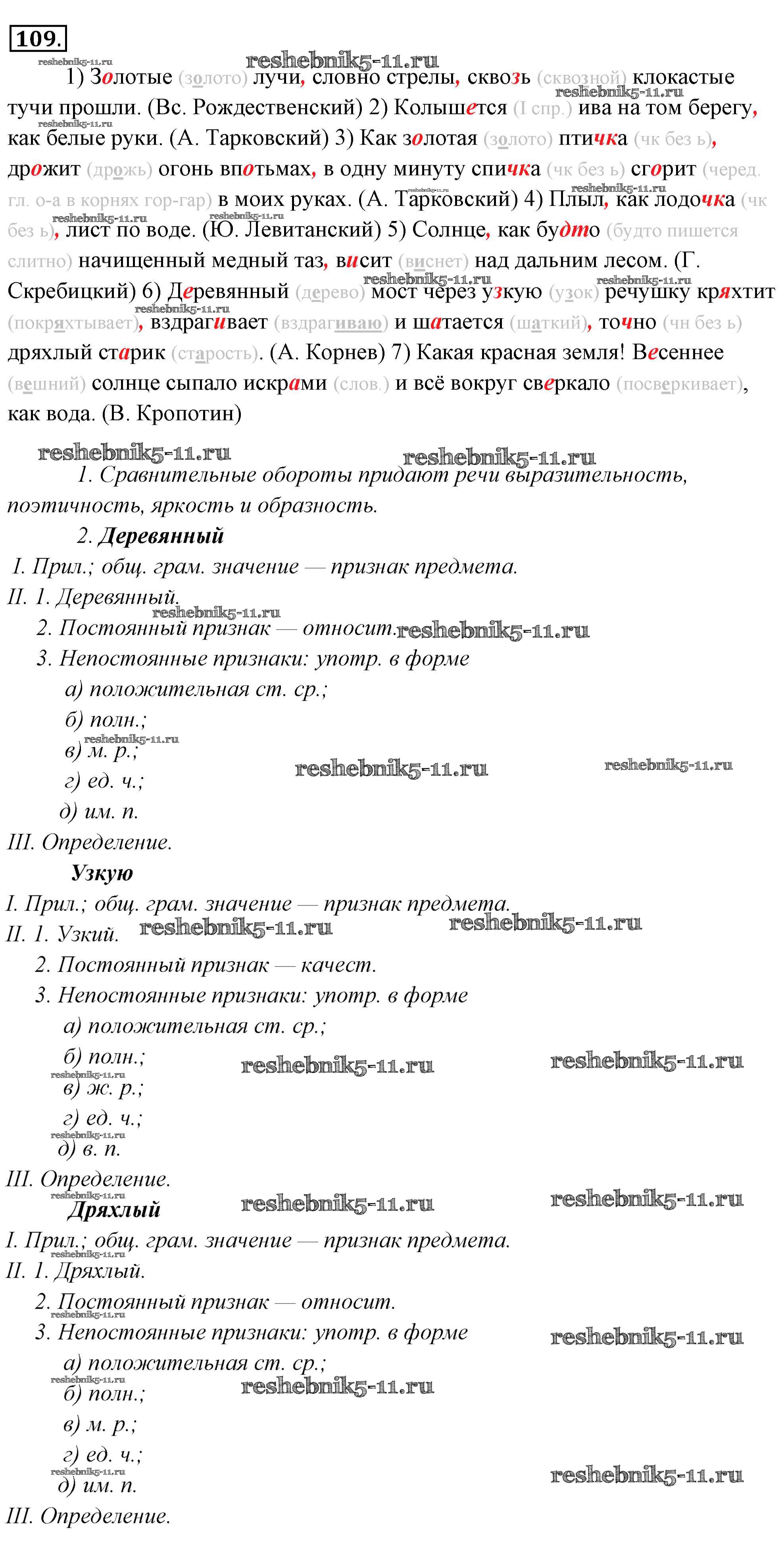 Готовая домашняя работа с ответами по Русскому языку за 6 класс Львова, Львов Учебник Часть 1, 2 Мнемозина 2013 ФГОС - Упражнения 109