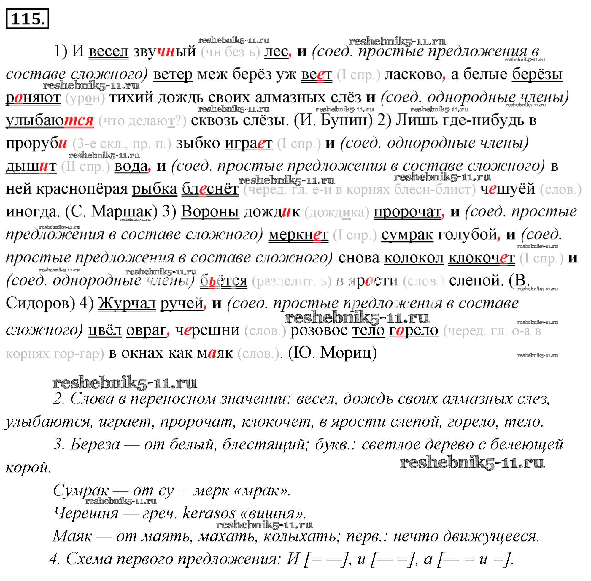 Готовая домашняя работа с ответами по Русскому языку за 6 класс Львова, Львов Учебник Часть 1, 2 Мнемозина 2013 ФГОС - Упражнения 115
