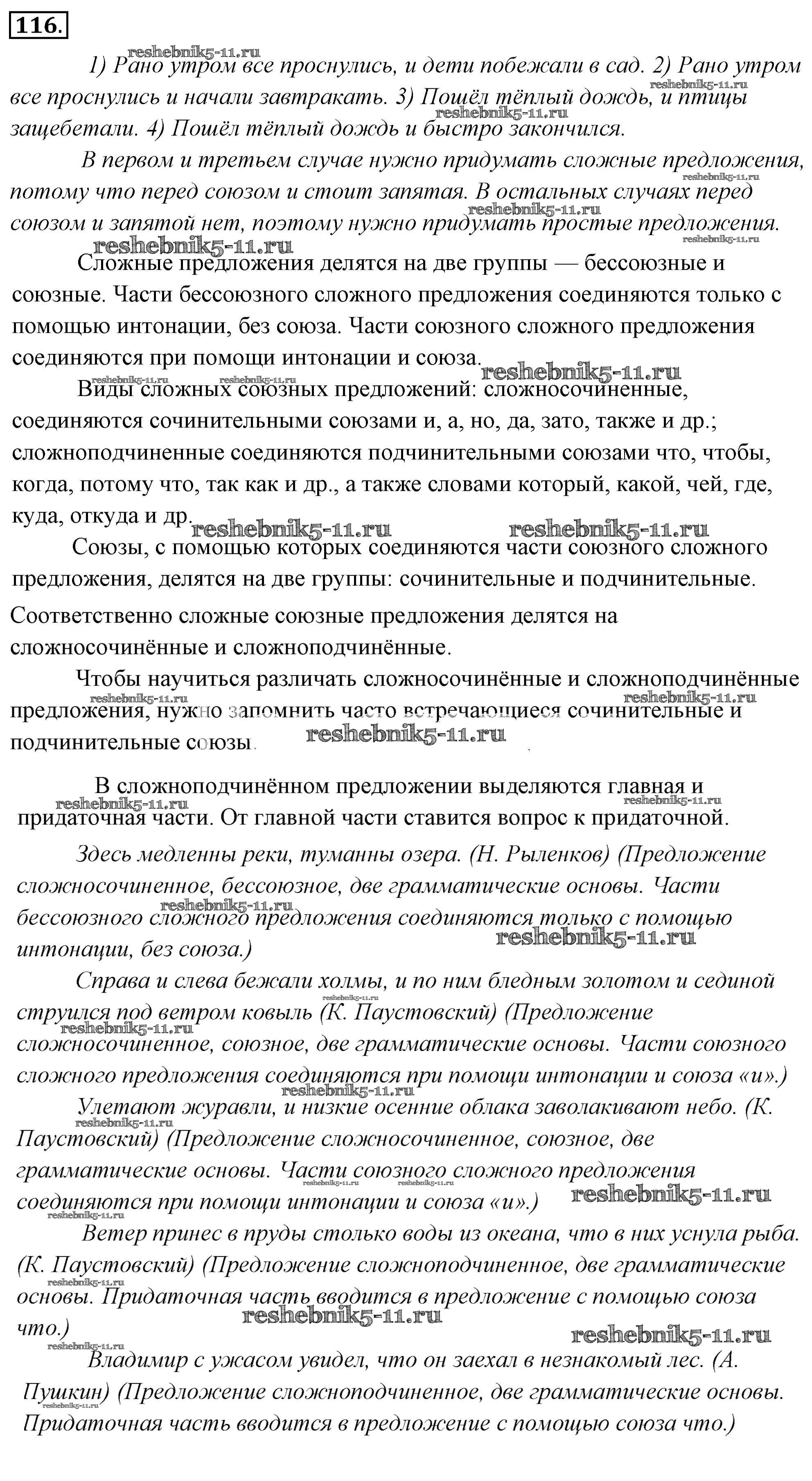Готовая домашняя работа с ответами по Русскому языку за 6 класс Львова, Львов Учебник Часть 1, 2 Мнемозина 2013 ФГОС - Упражнения 116