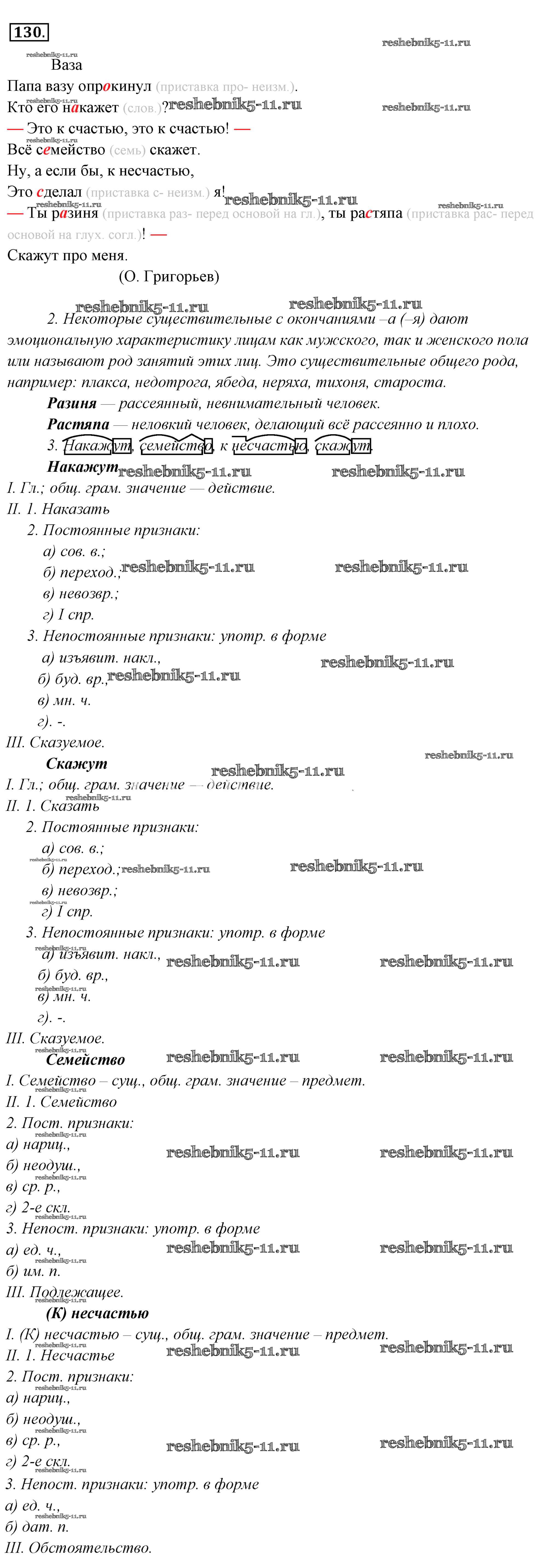 Готовая домашняя работа с ответами по Русскому языку за 6 класс Львова, Львов Учебник Часть 1, 2 Мнемозина 2013 ФГОС - Упражнения 130