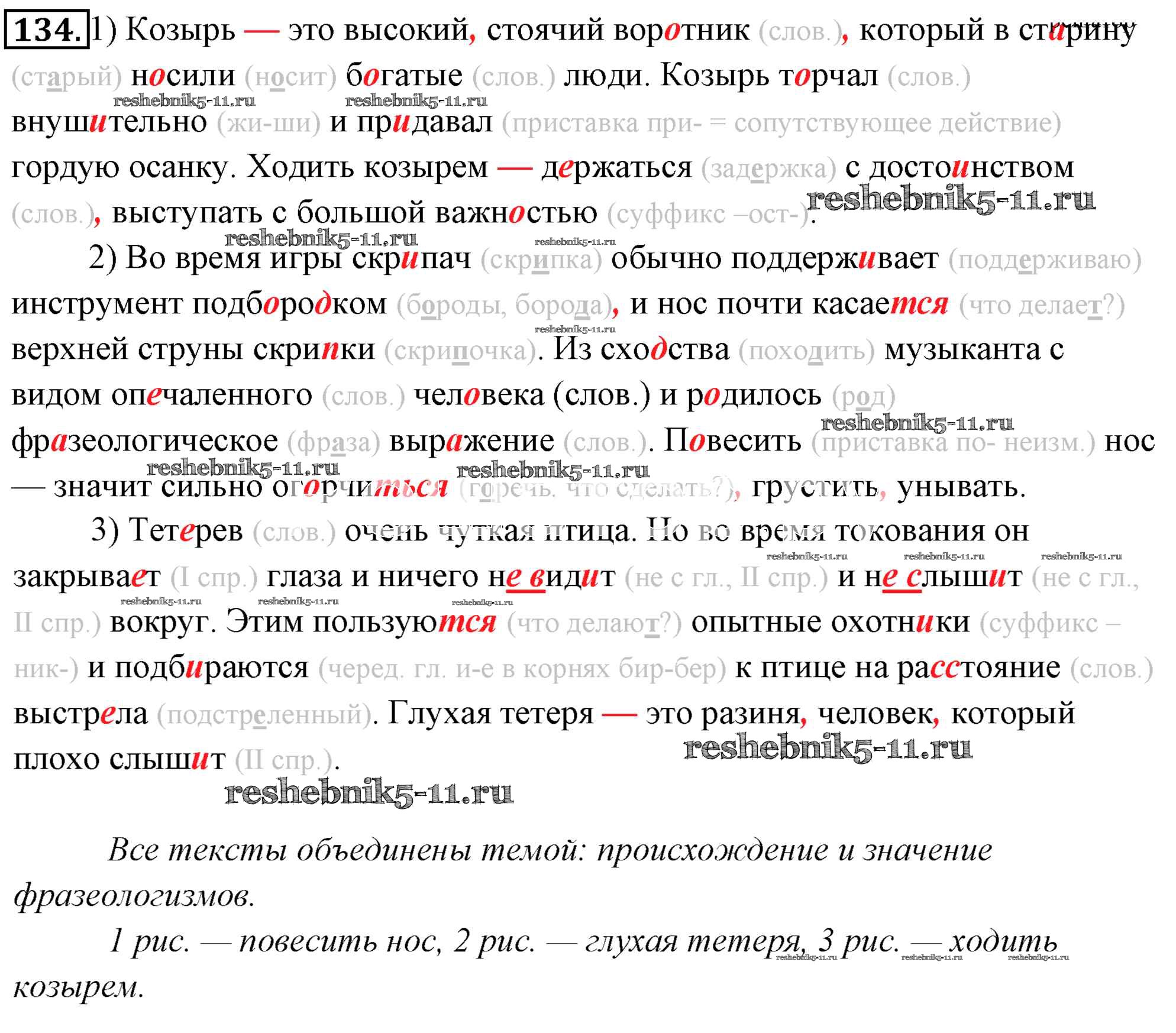 Готовая домашняя работа с ответами по Русскому языку за 6 класс Львова, Львов Учебник Часть 1, 2 Мнемозина 2013 ФГОС - Упражнения 134