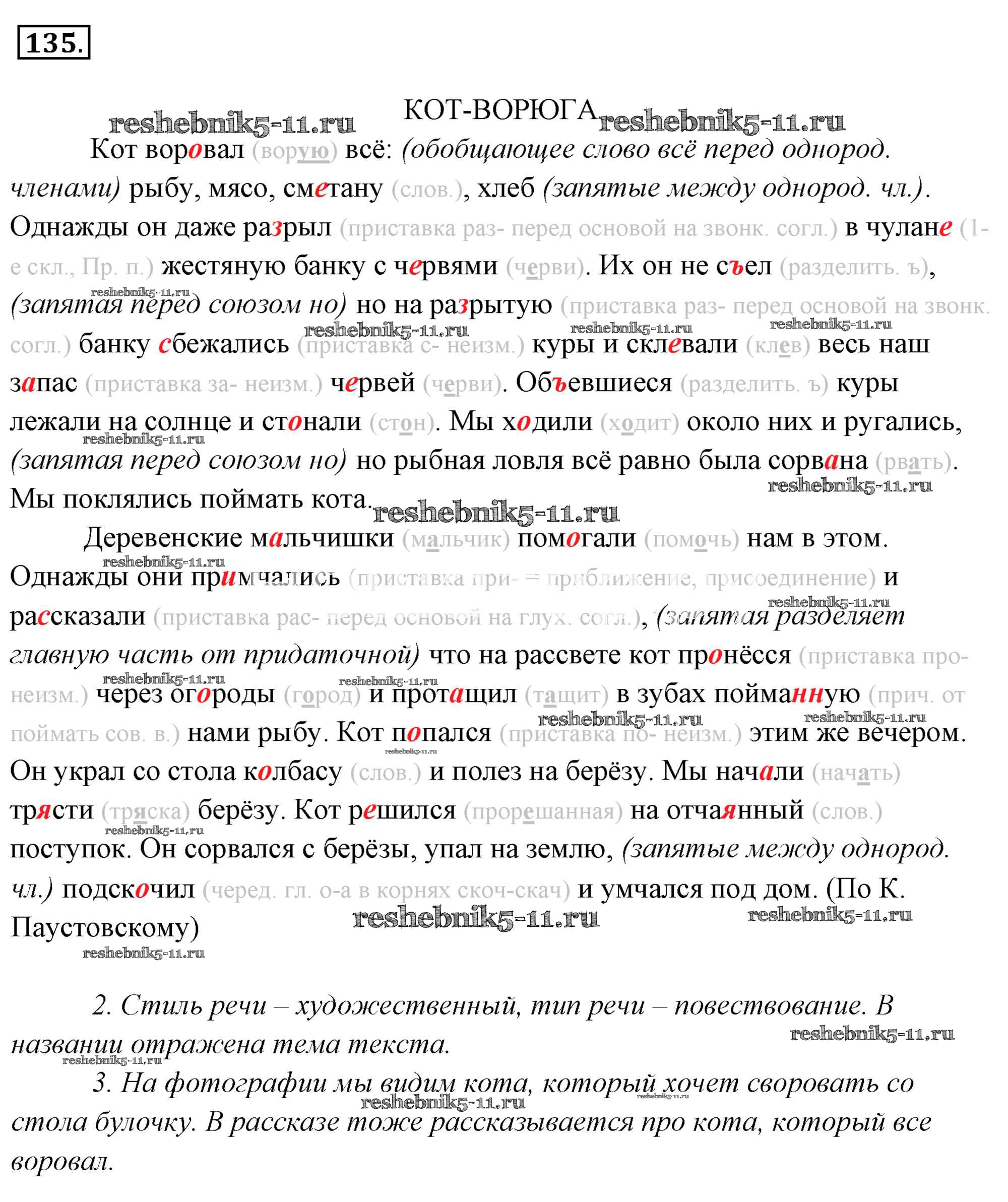 Готовая домашняя работа с ответами по Русскому языку за 6 класс Львова, Львов Учебник Часть 1, 2 Мнемозина 2013 ФГОС - Упражнения 135