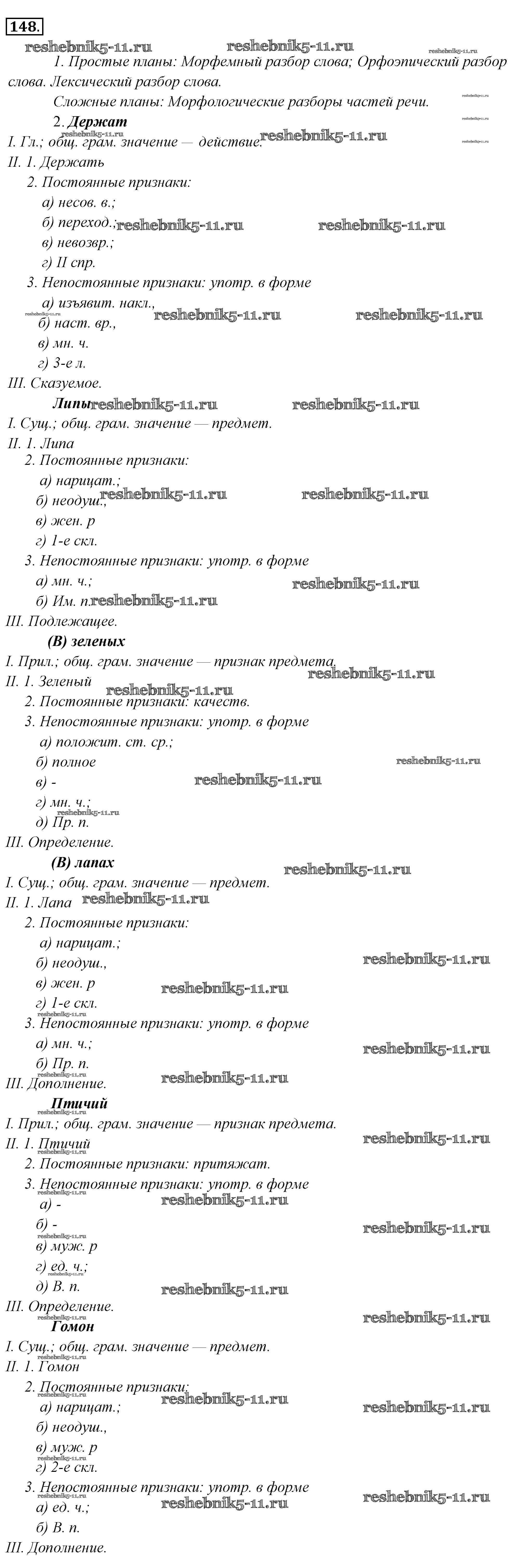 Готовая домашняя работа с ответами по Русскому языку за 6 класс Львова, Львов Учебник Часть 1, 2 Мнемозина 2013 ФГОС - Упражнения 148