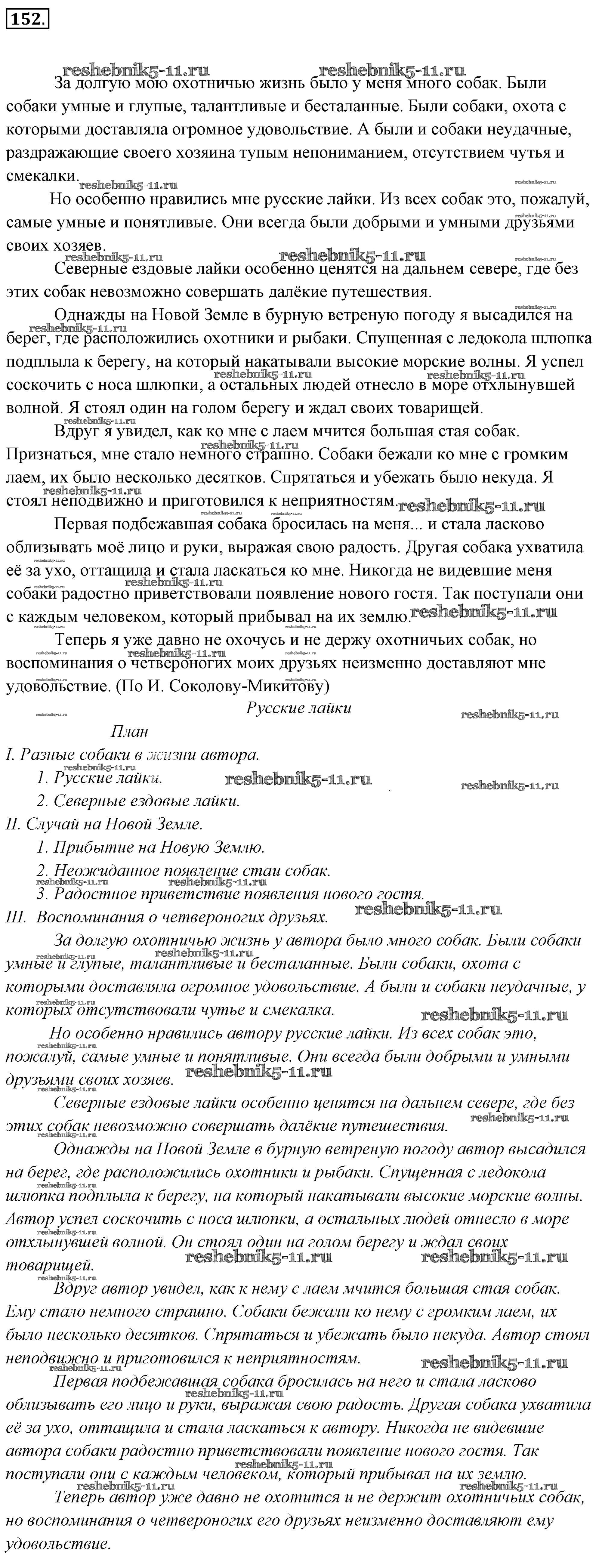 Готовая домашняя работа с ответами по Русскому языку за 6 класс Львова, Львов Учебник Часть 1, 2 Мнемозина 2013 ФГОС - Упражнения 152