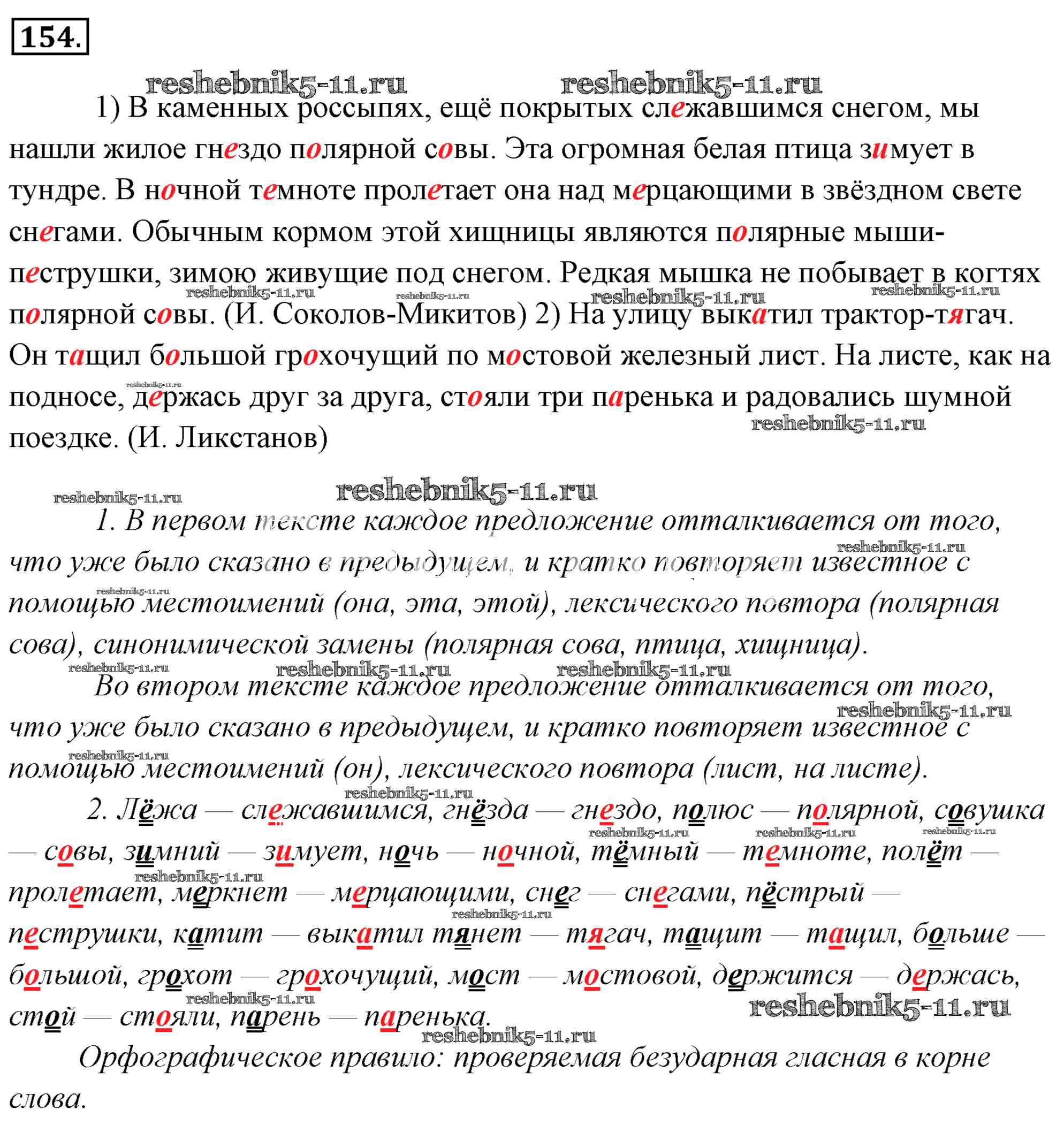 Готовая домашняя работа с ответами по Русскому языку за 6 класс Львова, Львов Учебник Часть 1, 2 Мнемозина 2013 ФГОС - Упражнения 154
