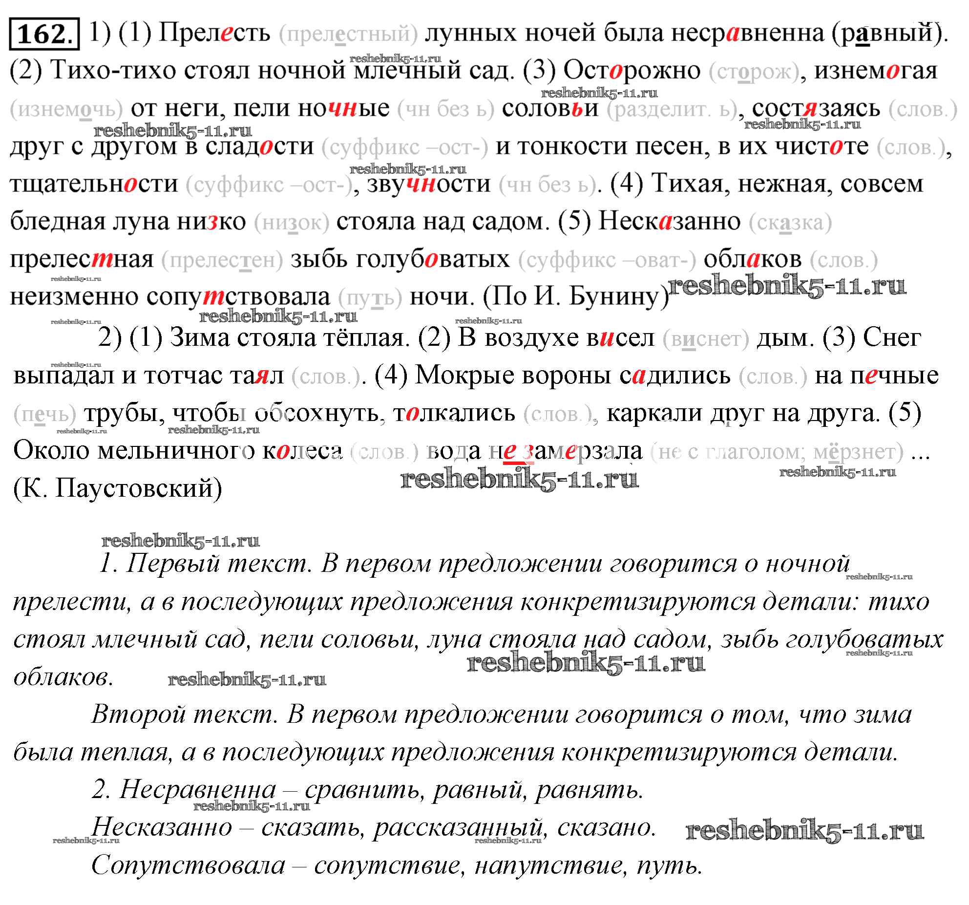 Готовая домашняя работа с ответами по Русскому языку за 6 класс Львова, Львов Учебник Часть 1, 2 Мнемозина 2013 ФГОС - Упражнения 162