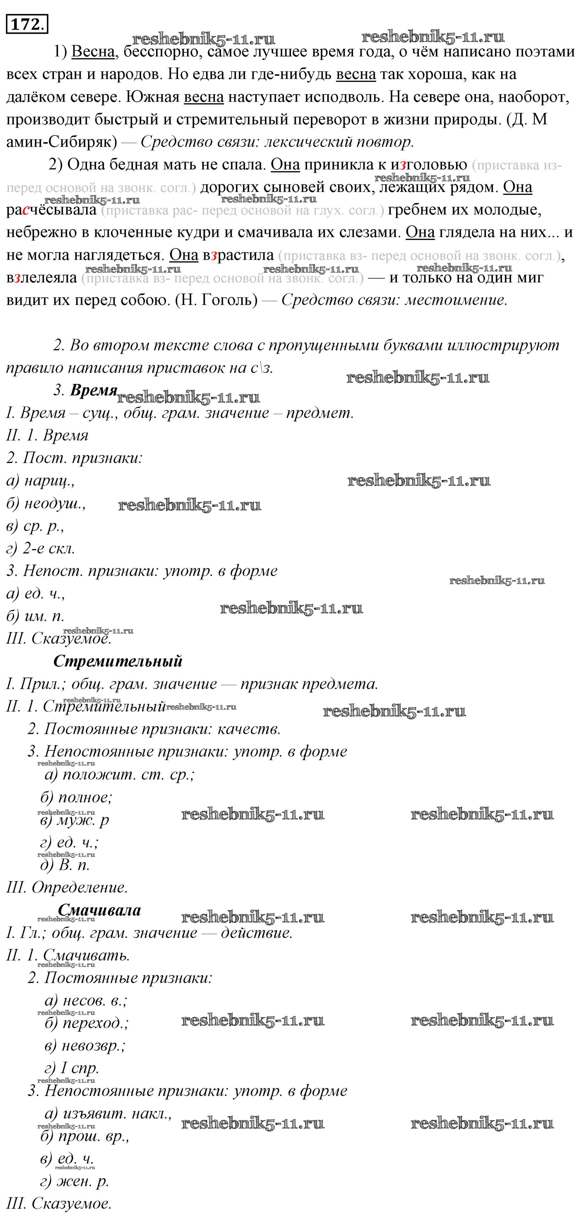 Готовая домашняя работа с ответами по Русскому языку за 6 класс Львова, Львов Учебник Часть 1, 2 Мнемозина 2013 ФГОС - Упражнения 172