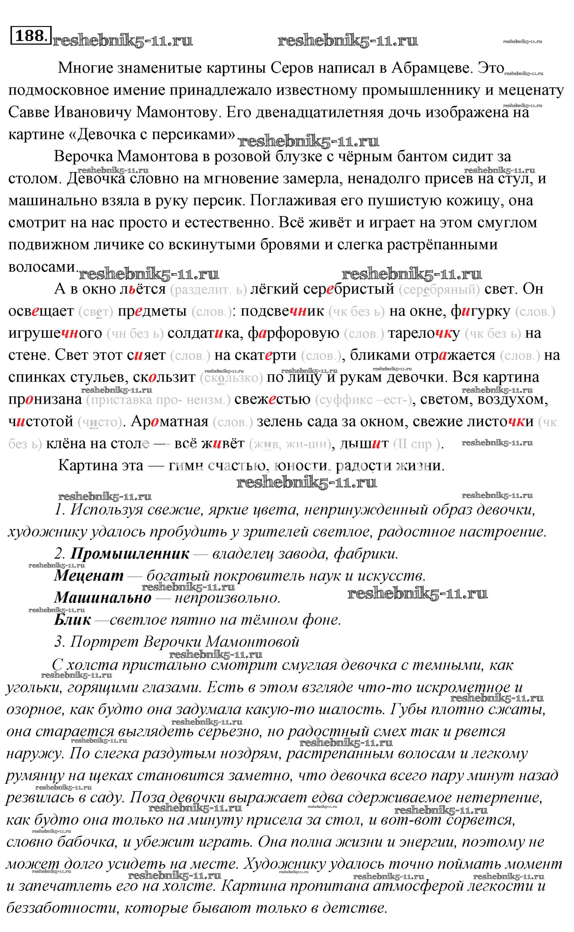 Готовая домашняя работа с ответами по Русскому языку за 6 класс Львова, Львов Учебник Часть 1, 2 Мнемозина 2013 ФГОС - Упражнения 188