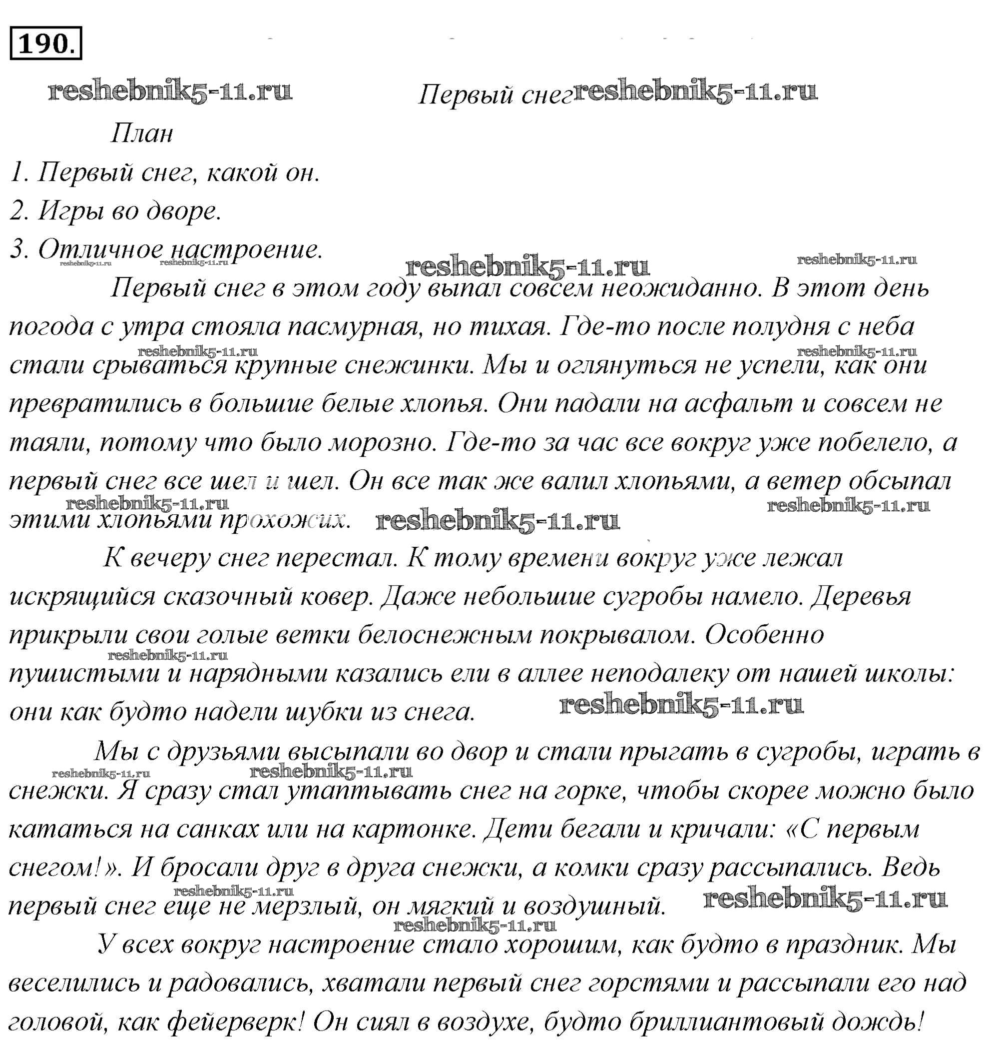 Готовая домашняя работа с ответами по Русскому языку за 6 класс Львова, Львов Учебник Часть 1, 2 Мнемозина 2013 ФГОС - Упражнения 190