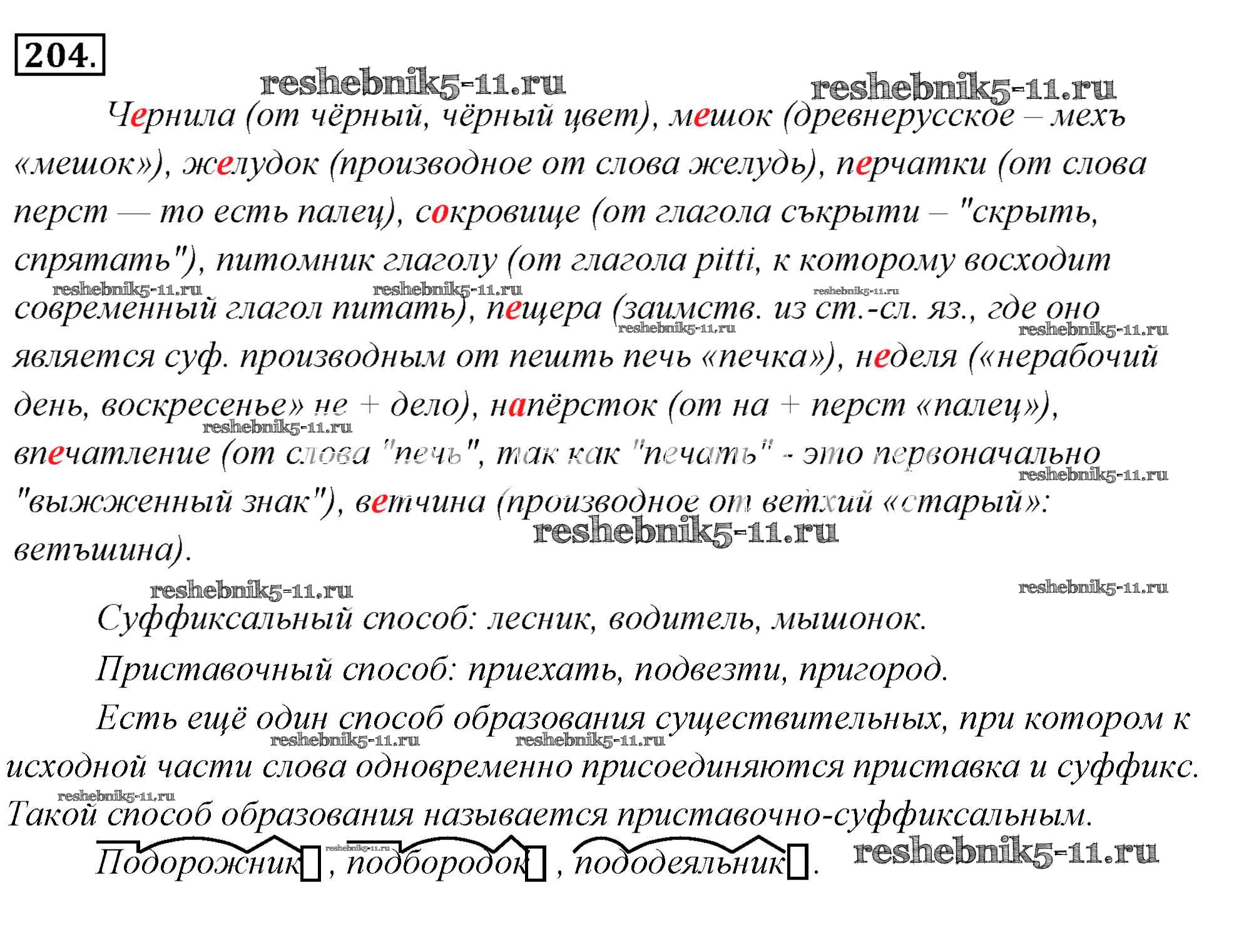 Готовая домашняя работа с ответами по Русскому языку за 6 класс Львова, Львов Учебник Часть 1, 2 Мнемозина 2013 ФГОС - Упражнения 204