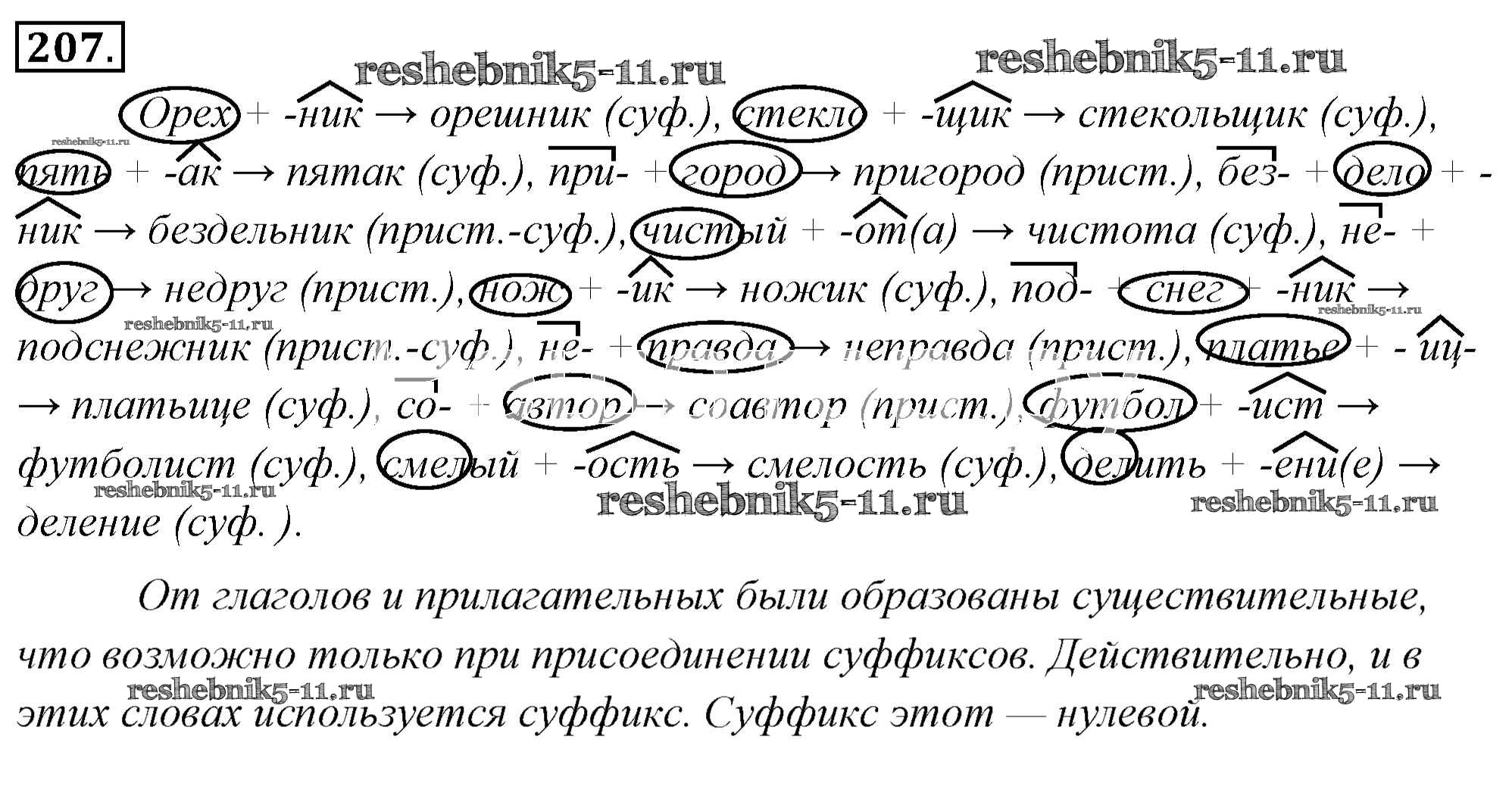 Готовая домашняя работа с ответами по Русскому языку за 6 класс Львова, Львов Учебник Часть 1, 2 Мнемозина 2013 ФГОС - Упражнения 207