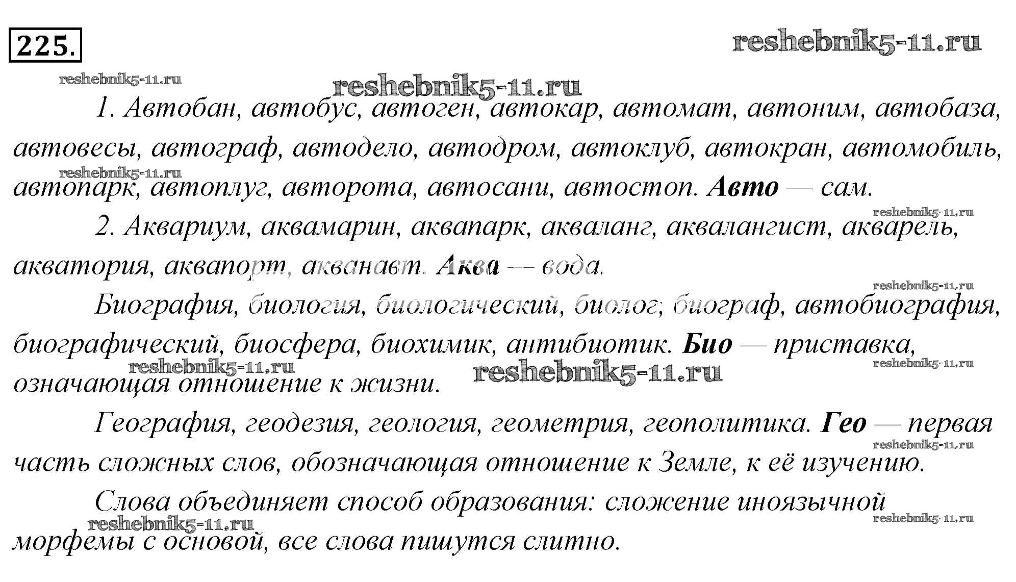 Готовая домашняя работа с ответами по Русскому языку за 6 класс Львова, Львов Учебник Часть 1, 2 Мнемозина 2013 ФГОС - Упражнения 225