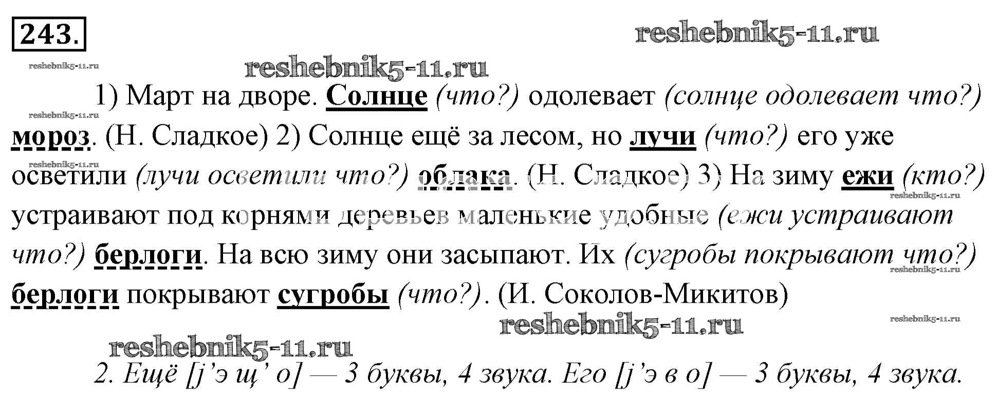 Готовая домашняя работа с ответами по Русскому языку за 6 класс Львова, Львов Учебник Часть 1, 2 Мнемозина 2013 ФГОС - Упражнения 243