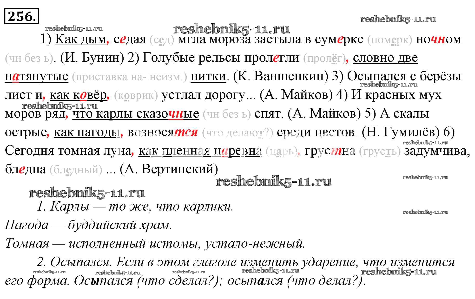 Готовая домашняя работа с ответами по Русскому языку за 6 класс Львова, Львов Учебник Часть 1, 2 Мнемозина 2013 ФГОС - Упражнения 256
