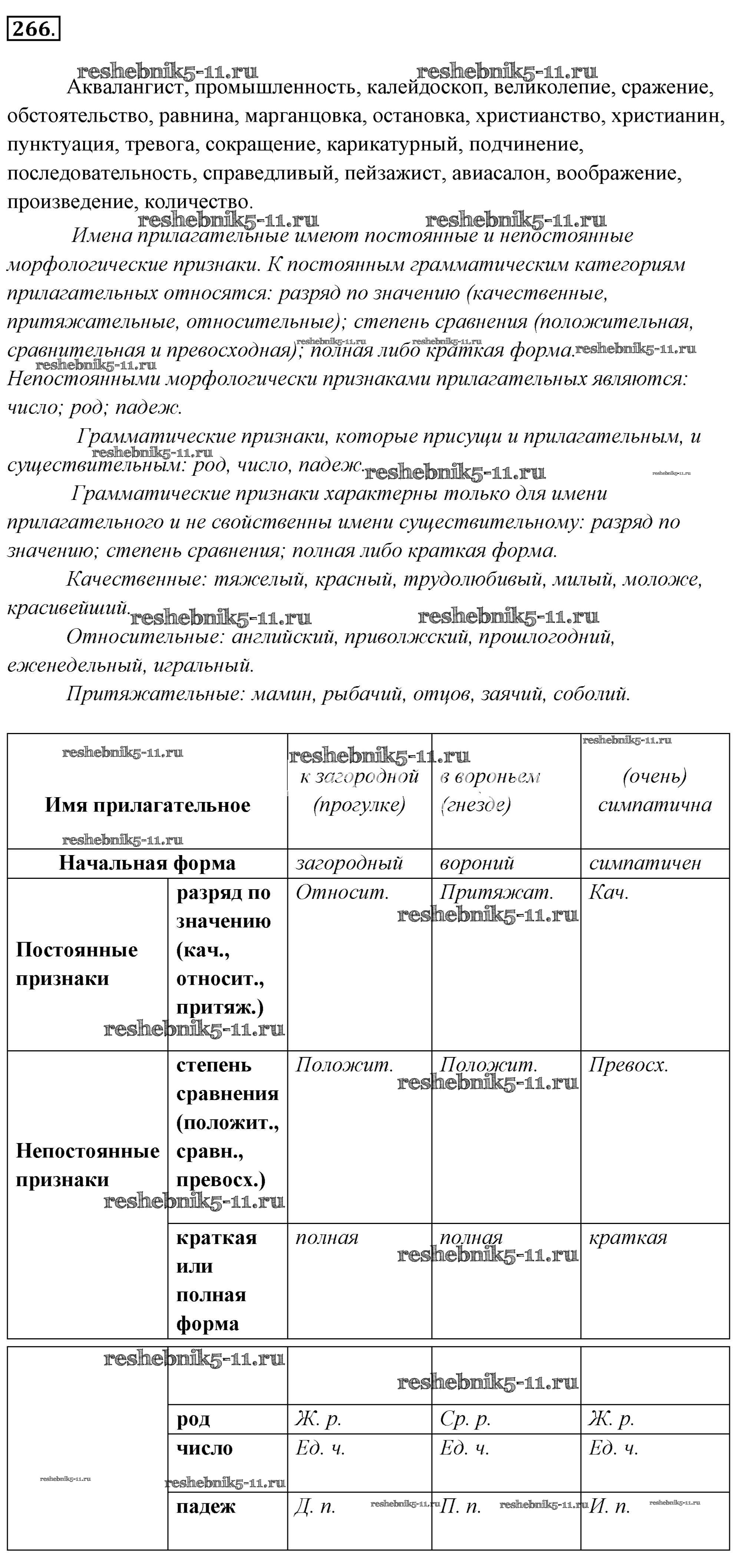 Готовая домашняя работа с ответами по Русскому языку за 6 класс Львова, Львов Учебник Часть 1, 2 Мнемозина 2013 ФГОС - Упражнения 266