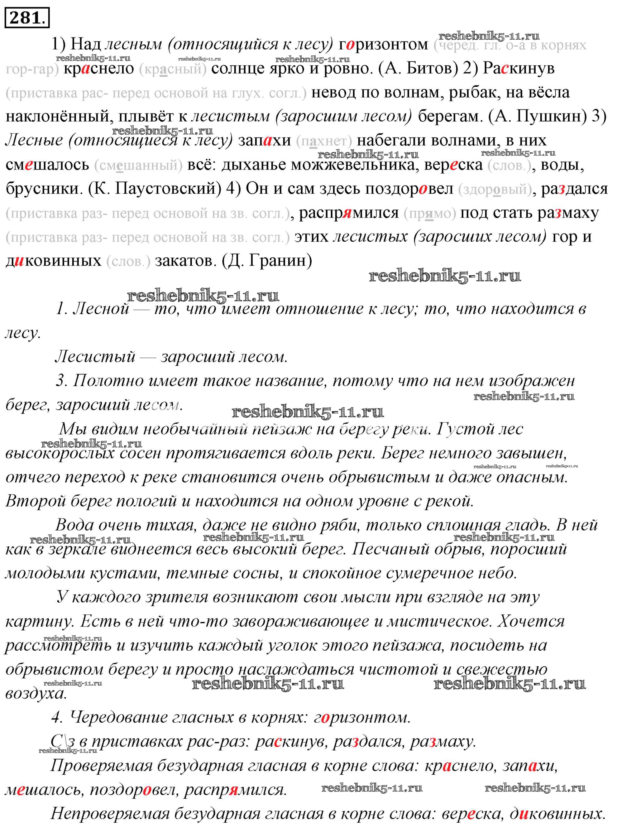 Готовая домашняя работа с ответами по Русскому языку за 6 класс Львова, Львов Учебник Часть 1, 2 Мнемозина 2013 ФГОС - Упражнения 281