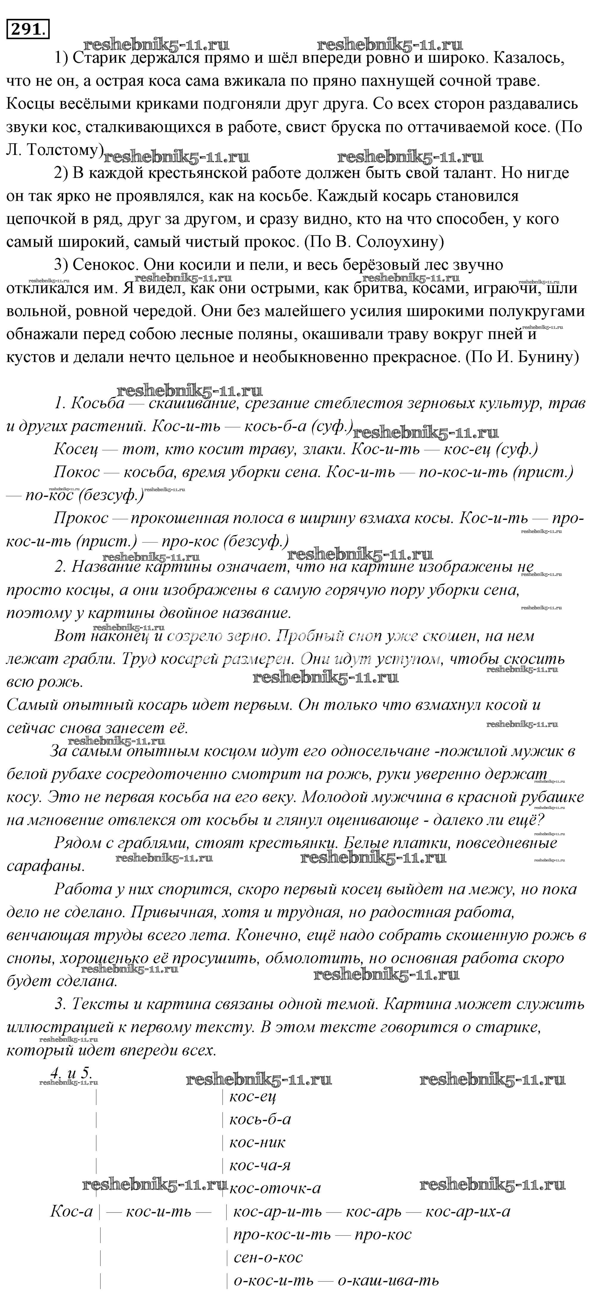 Готовая домашняя работа с ответами по Русскому языку за 6 класс Львова, Львов Учебник Часть 1, 2 Мнемозина 2013 ФГОС - Упражнения 291