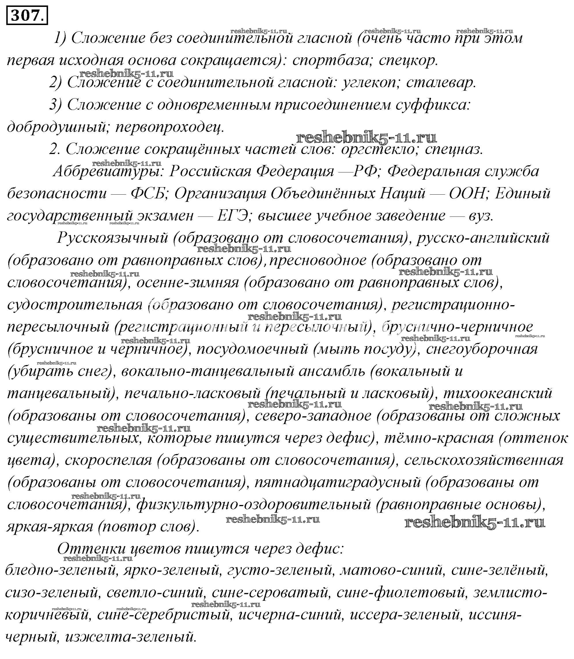 Готовая домашняя работа с ответами по Русскому языку за 6 класс Львова, Львов Учебник Часть 1, 2 Мнемозина 2013 ФГОС - Упражнения 307