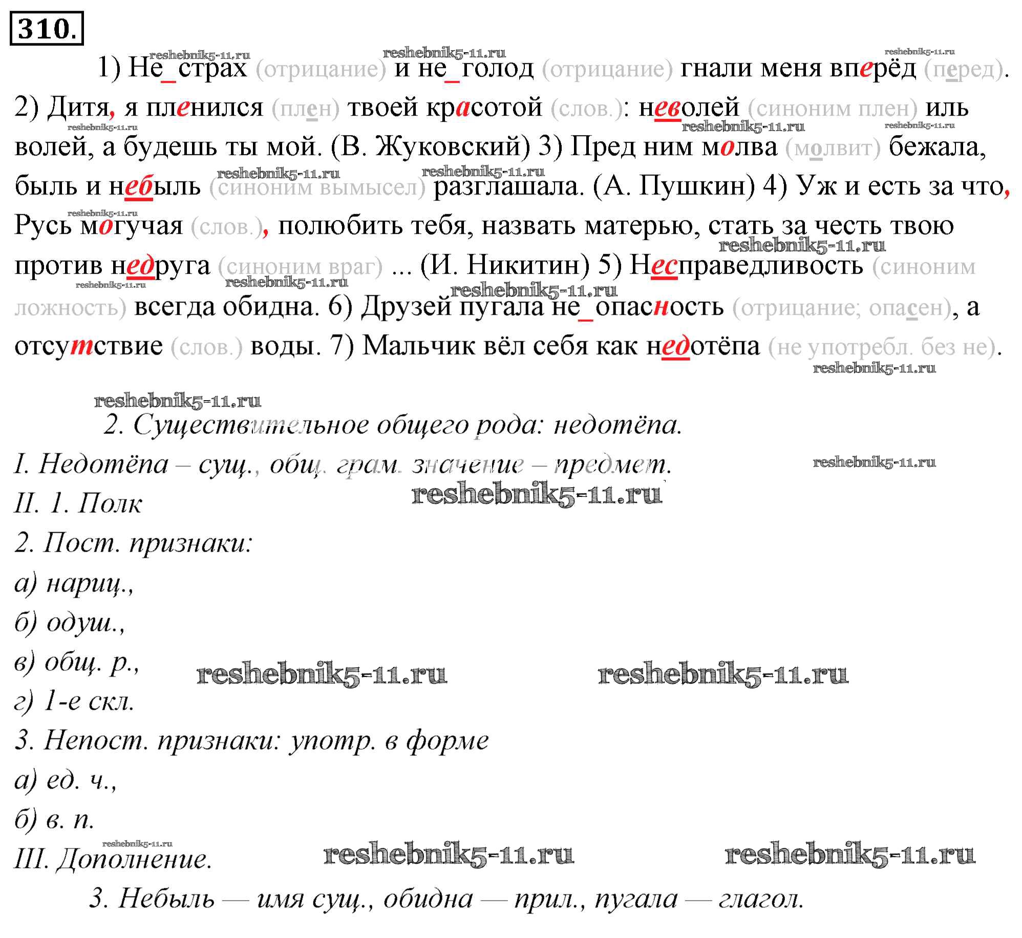 Готовая домашняя работа с ответами по Русскому языку за 6 класс Львова, Львов Учебник Часть 1, 2 Мнемозина 2013 ФГОС - Упражнения 310