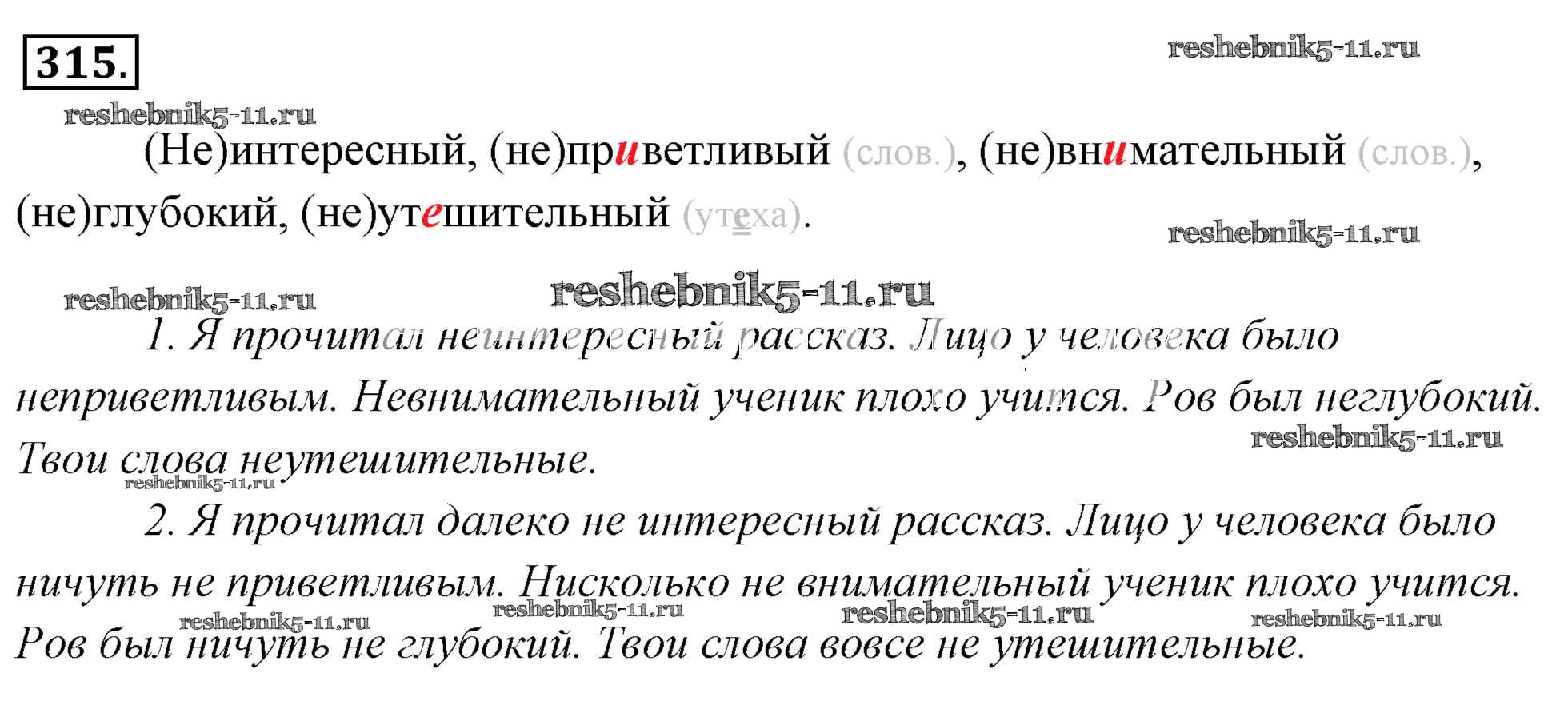 Готовая домашняя работа с ответами по Русскому языку за 6 класс Львова, Львов Учебник Часть 1, 2 Мнемозина 2013 ФГОС - Упражнения 315