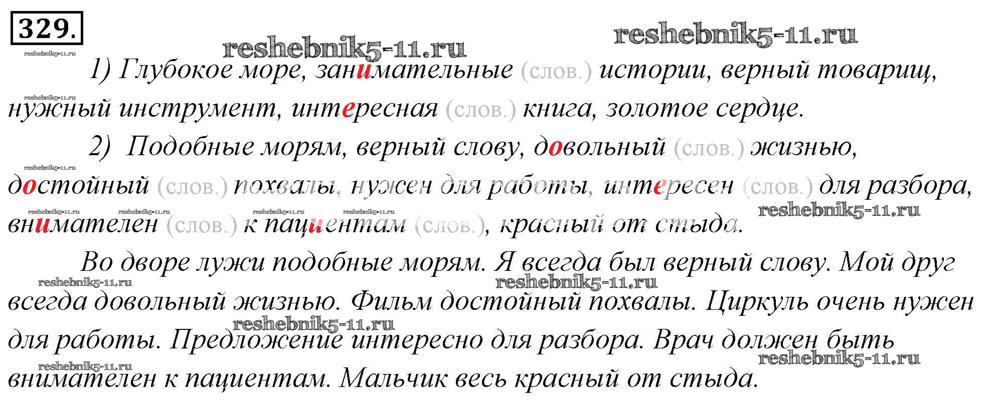 Готовая домашняя работа с ответами по Русскому языку за 6 класс Львова, Львов Учебник Часть 1, 2 Мнемозина 2013 ФГОС - Упражнения 329