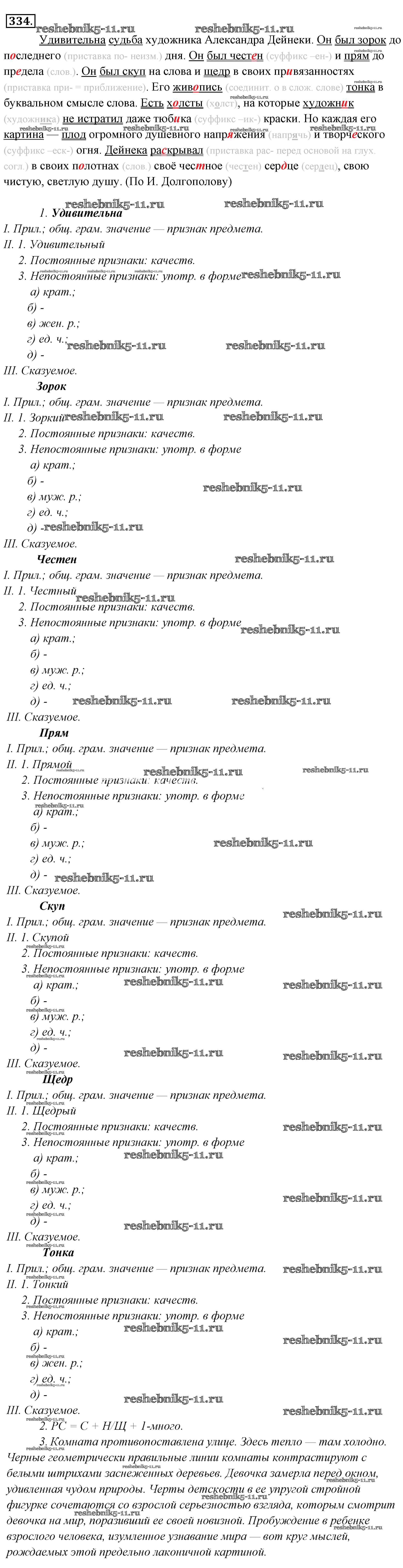 Готовая домашняя работа с ответами по Русскому языку за 6 класс Львова, Львов Учебник Часть 1, 2 Мнемозина 2013 ФГОС - Упражнения 334