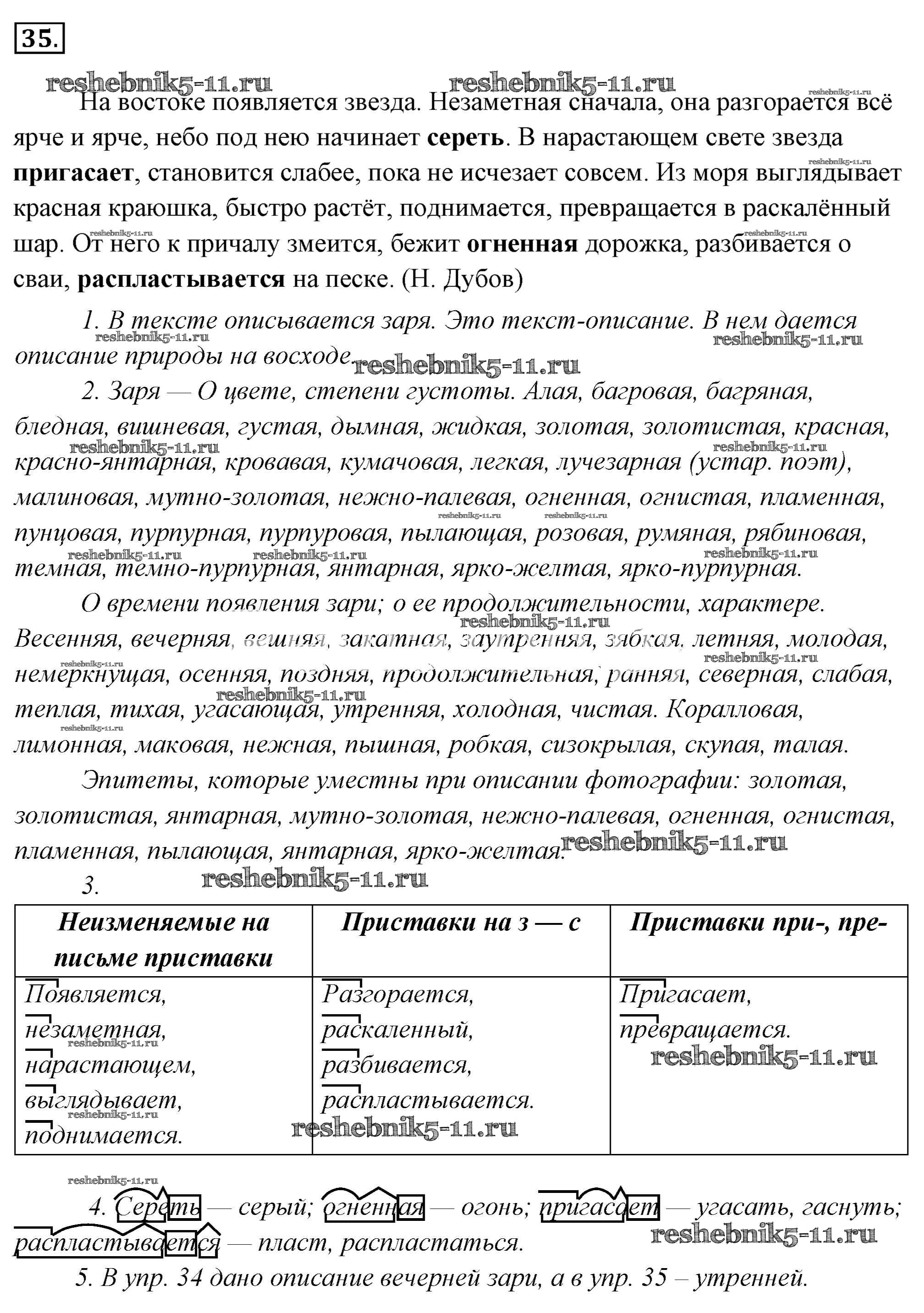Готовая домашняя работа с ответами по Русскому языку за 6 класс Львова, Львов Учебник Часть 1, 2 Мнемозина 2013 ФГОС - Упражнения 35