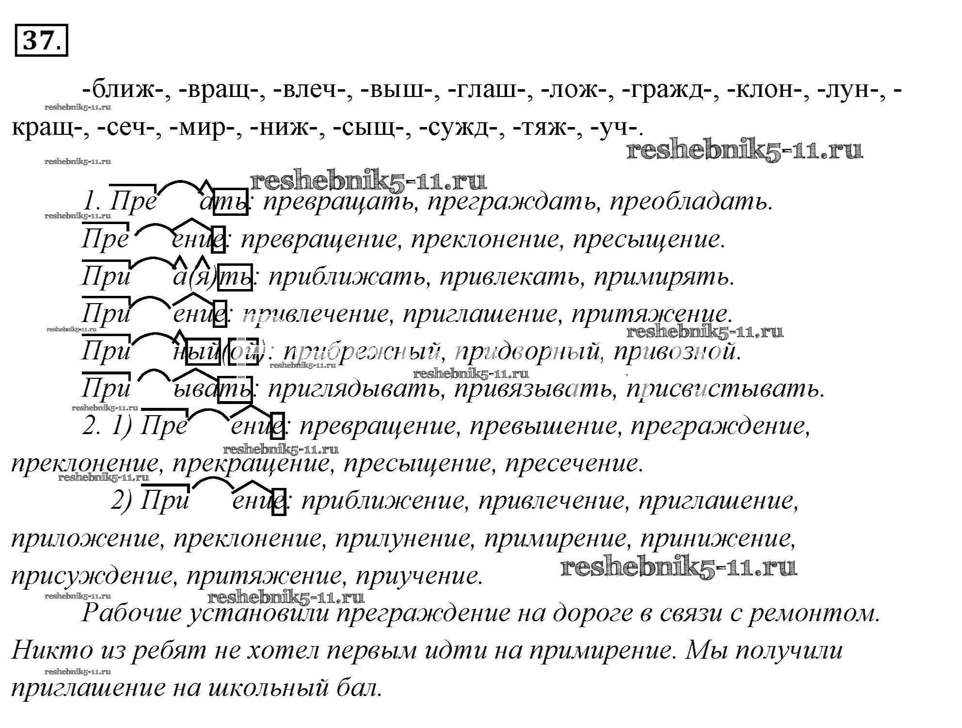 Готовая домашняя работа с ответами по Русскому языку за 6 класс Львова, Львов Учебник Часть 1, 2 Мнемозина 2013 ФГОС - Упражнения 37