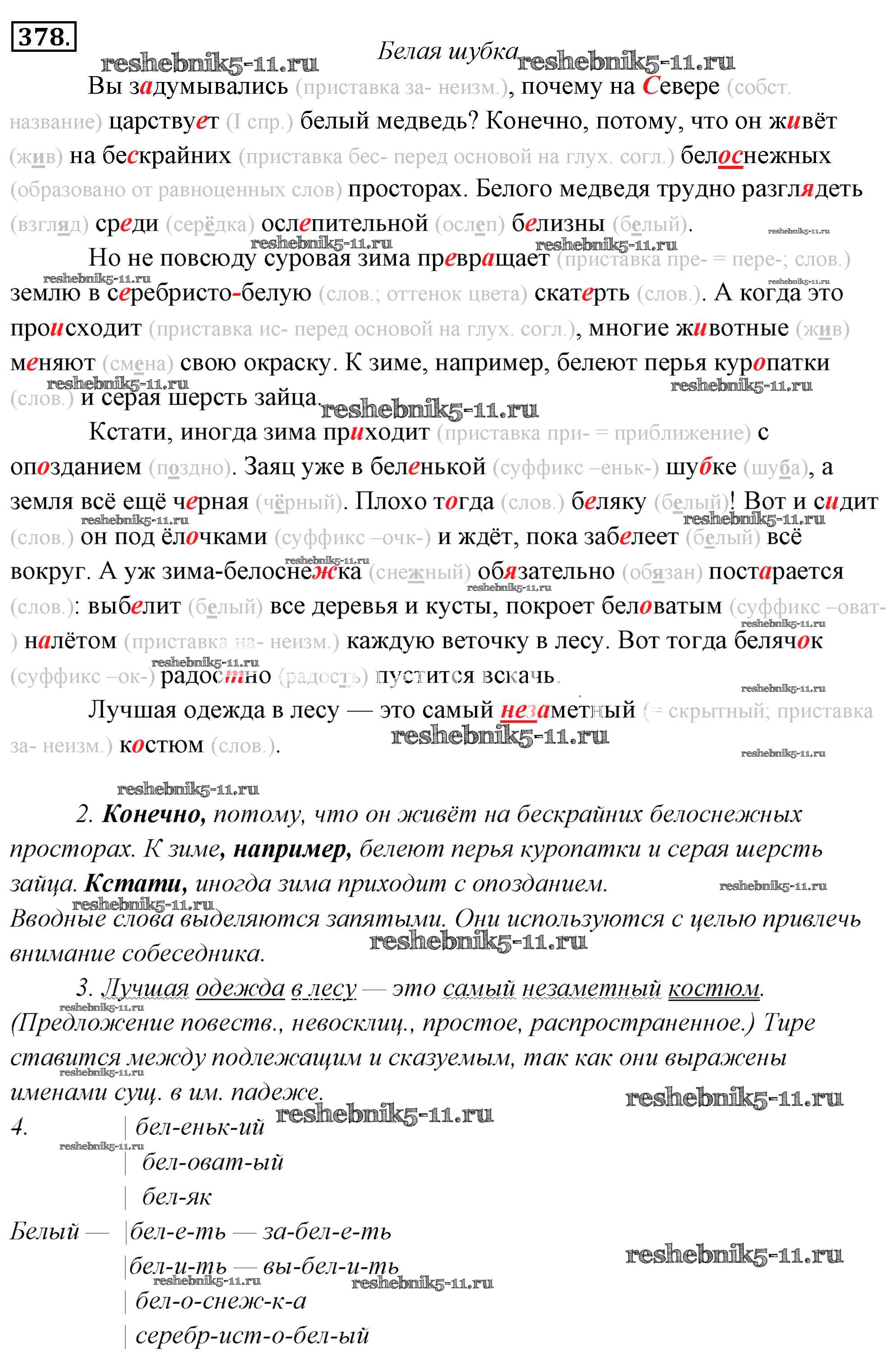 Готовая домашняя работа с ответами по Русскому языку за 6 класс Львова, Львов Учебник Часть 1, 2 Мнемозина 2013 ФГОС - Упражнения 378