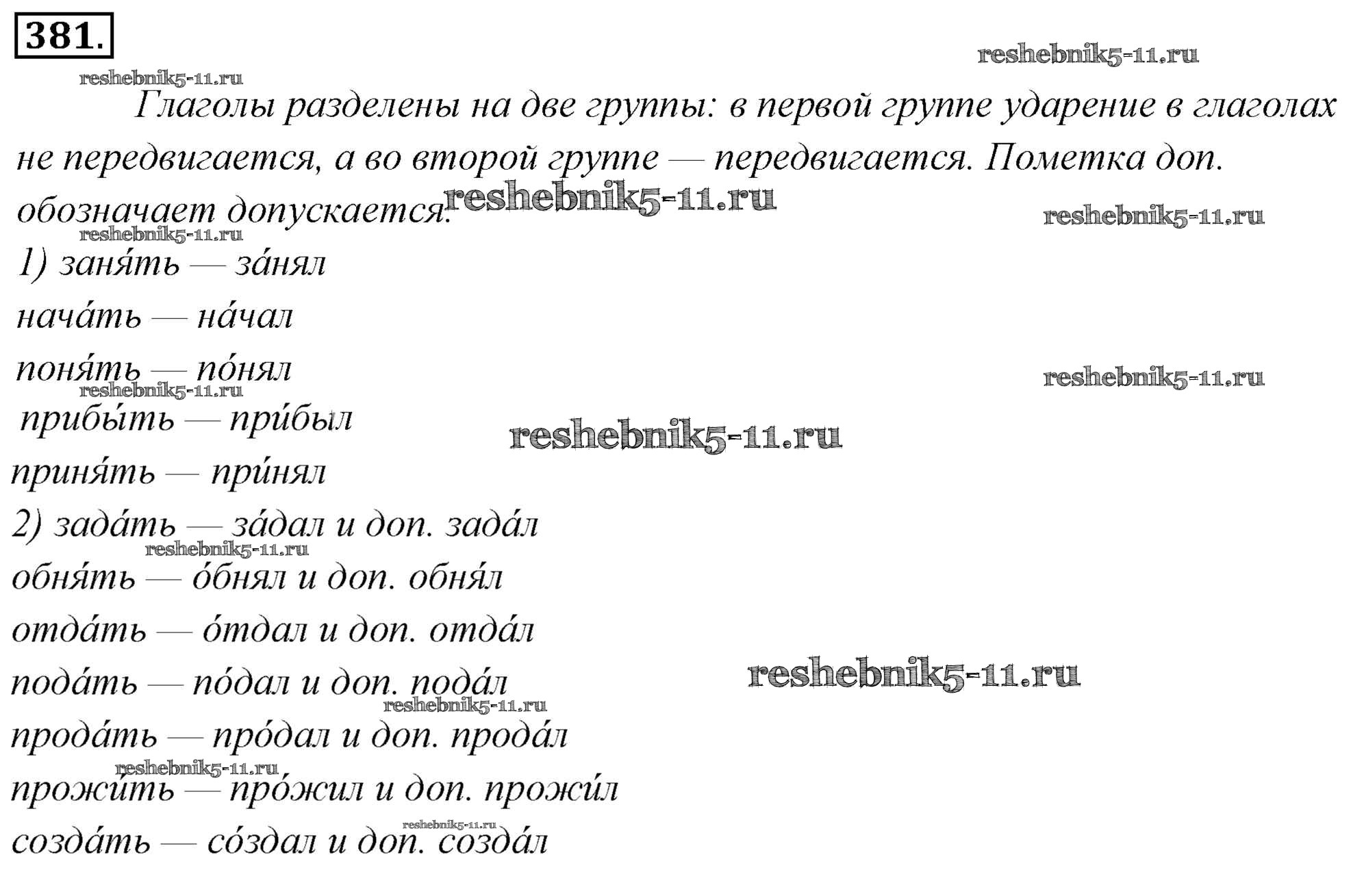 Готовая домашняя работа с ответами по Русскому языку за 6 класс Львова, Львов Учебник Часть 1, 2 Мнемозина 2013 ФГОС - Упражнения 381