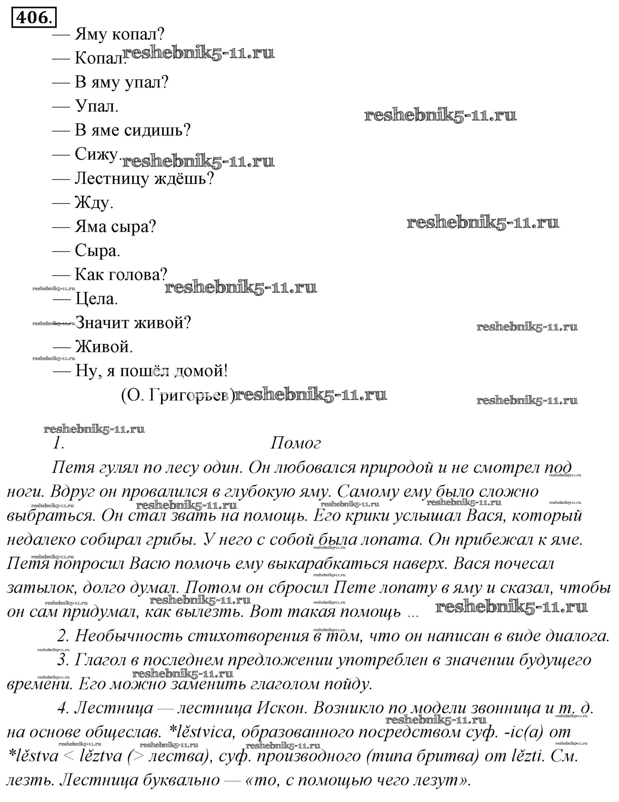 Готовая домашняя работа с ответами по Русскому языку за 6 класс Львова, Львов Учебник Часть 1, 2 Мнемозина 2013 ФГОС - Упражнения 406