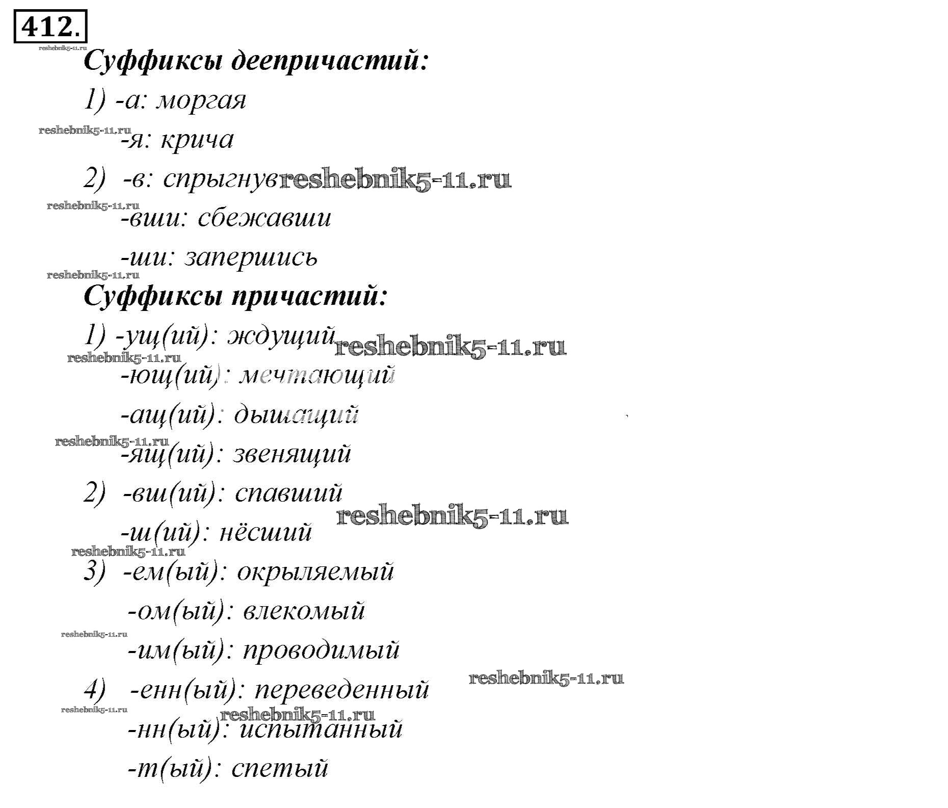 Готовая домашняя работа с ответами по Русскому языку за 6 класс Львова, Львов Учебник Часть 1, 2 Мнемозина 2013 ФГОС - Упражнения 412