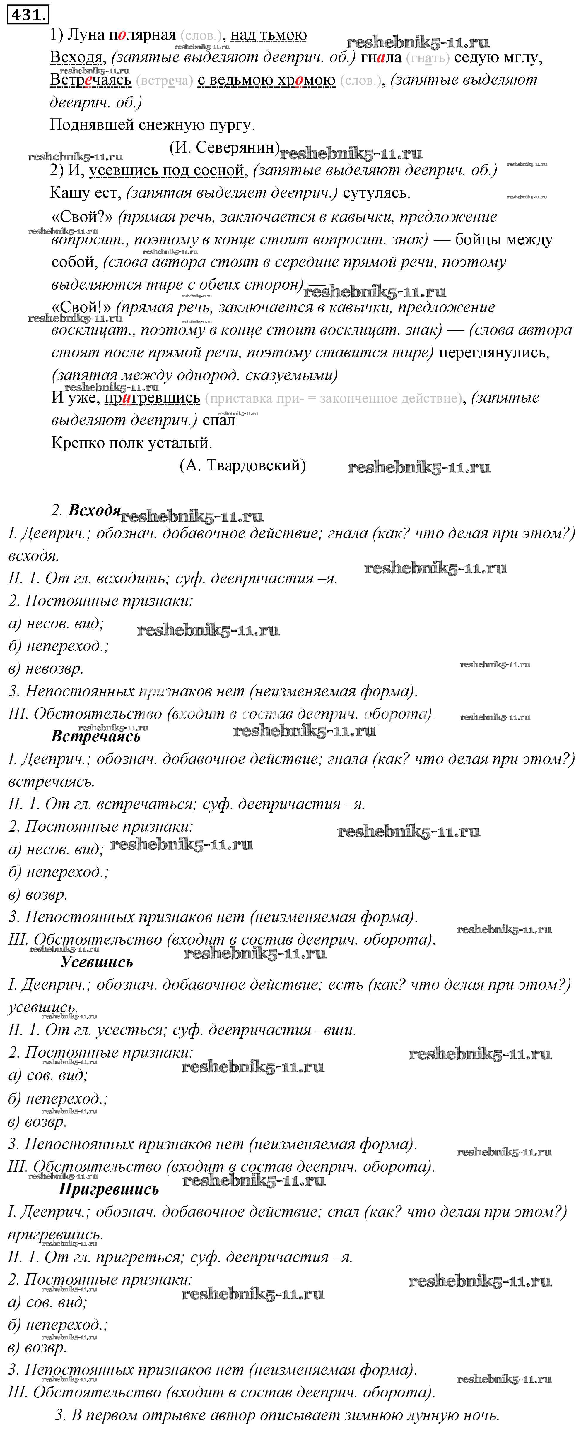Готовая домашняя работа с ответами по Русскому языку за 6 класс Львова, Львов Учебник Часть 1, 2 Мнемозина 2013 ФГОС - Упражнения 431