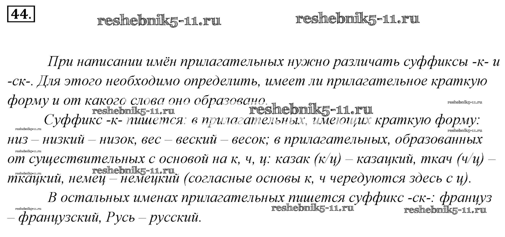 Готовая домашняя работа с ответами по Русскому языку за 6 класс Львова, Львов Учебник Часть 1, 2 Мнемозина 2013 ФГОС - Упражнения 44