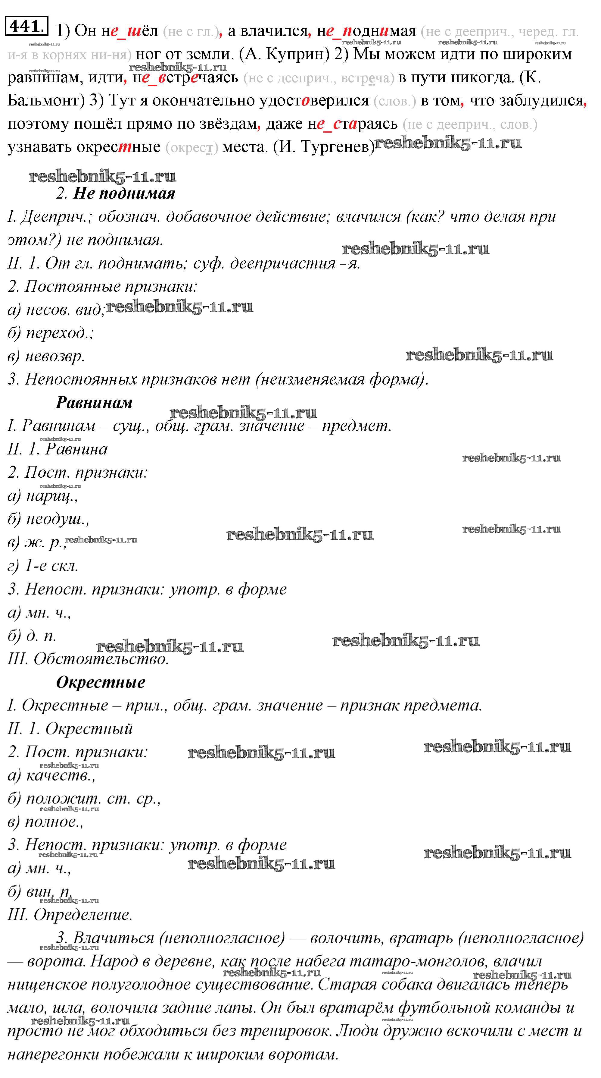 Готовая домашняя работа с ответами по Русскому языку за 6 класс Львова, Львов Учебник Часть 1, 2 Мнемозина 2013 ФГОС - Упражнения 441