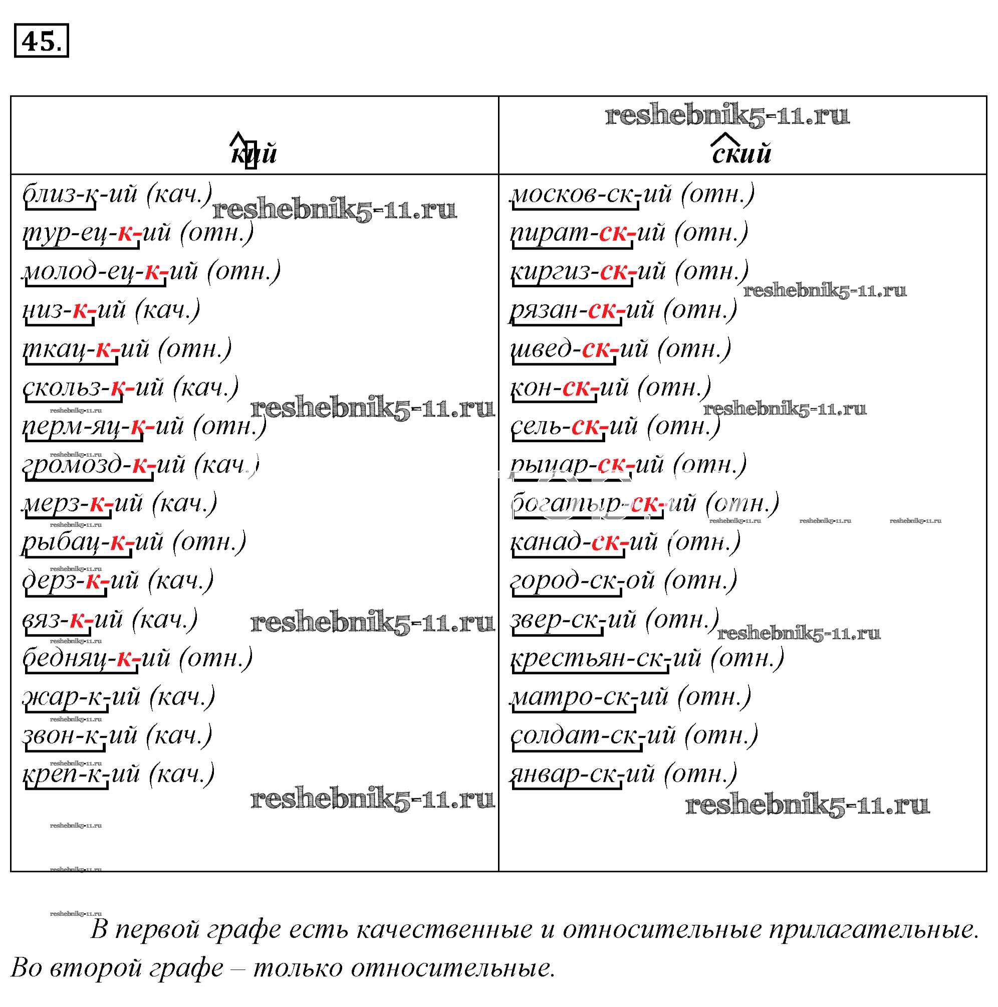 Готовая домашняя работа с ответами по Русскому языку за 6 класс Львова, Львов Учебник Часть 1, 2 Мнемозина 2013 ФГОС - Упражнения 45