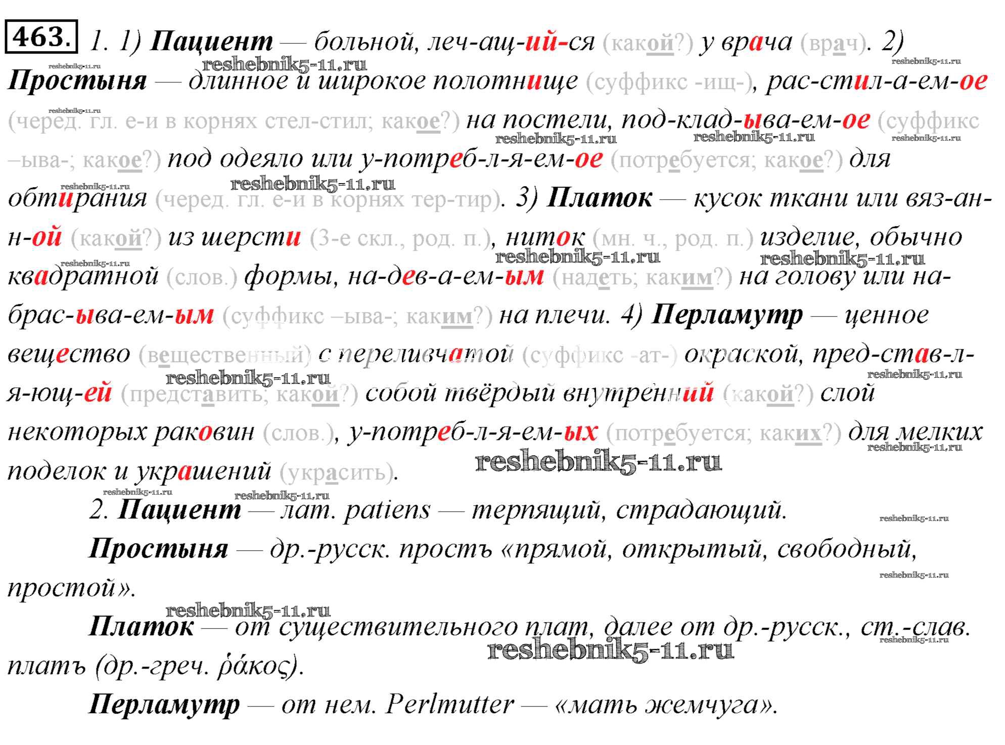 Готовая домашняя работа с ответами по Русскому языку за 6 класс Львова, Львов Учебник Часть 1, 2 Мнемозина 2013 ФГОС - Упражнения 463