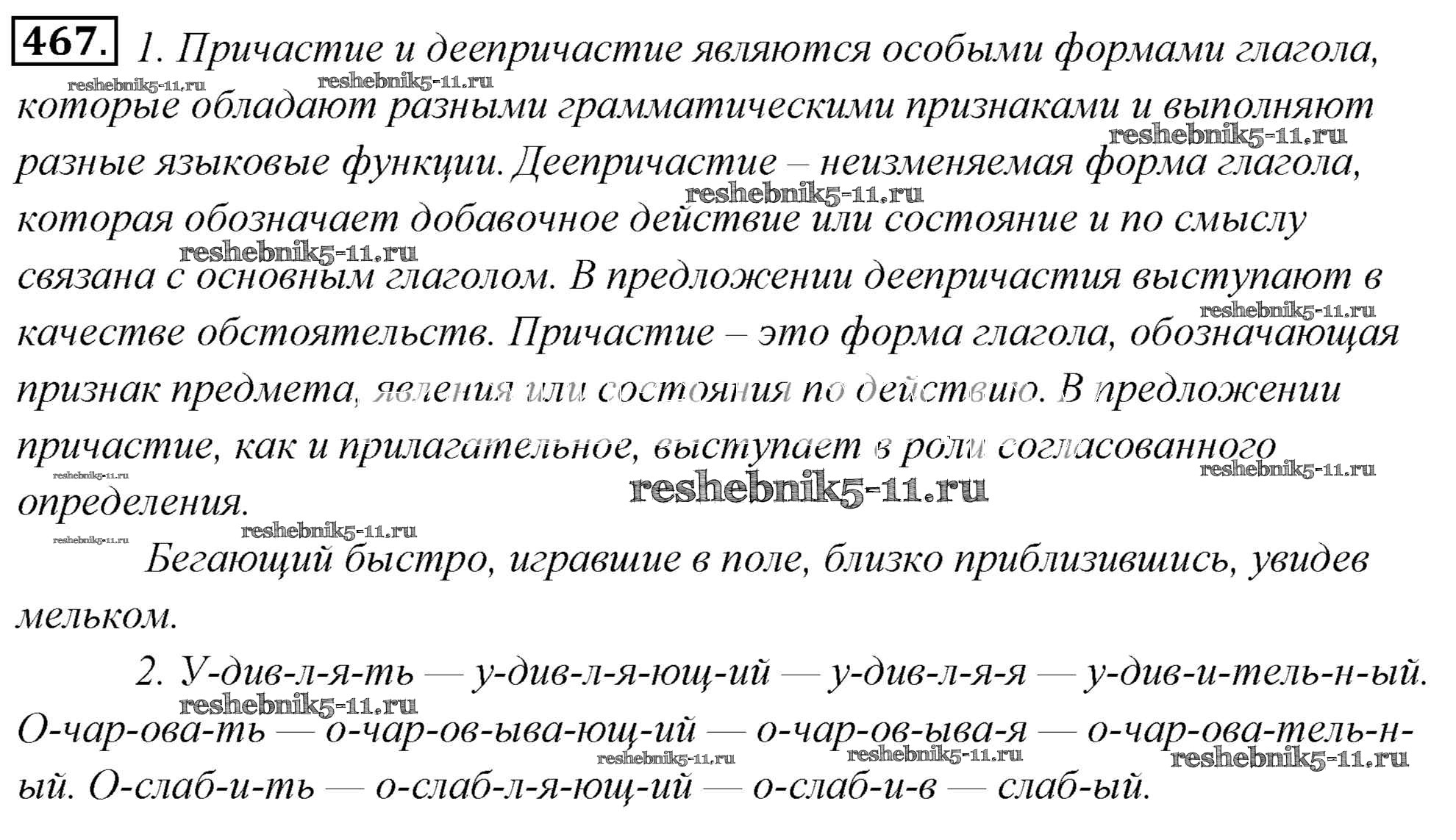 Готовая домашняя работа с ответами по Русскому языку за 6 класс Львова, Львов Учебник Часть 1, 2 Мнемозина 2013 ФГОС - Упражнения 467