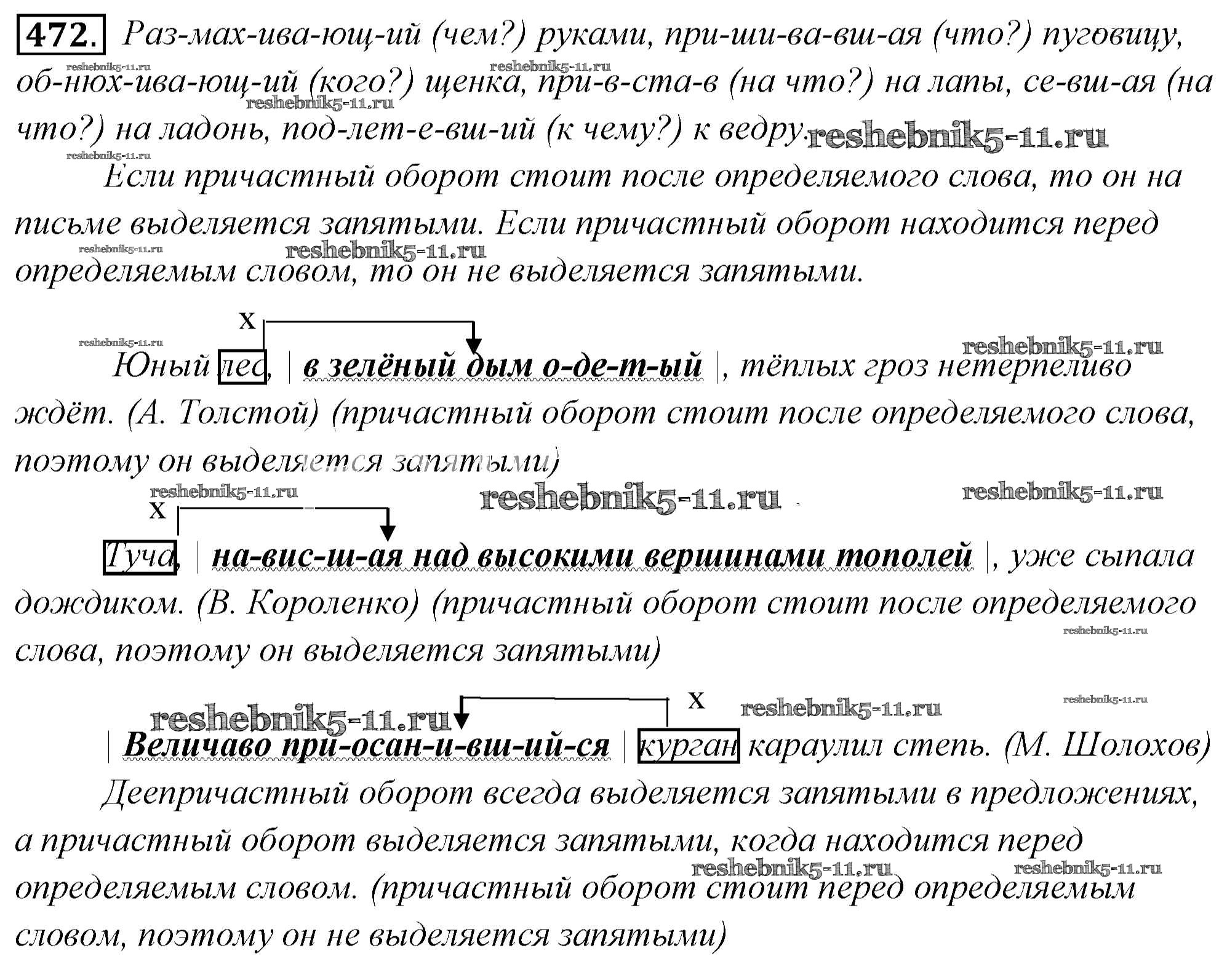 Готовая домашняя работа с ответами по Русскому языку за 6 класс Львова, Львов Учебник Часть 1, 2 Мнемозина 2013 ФГОС - Упражнения 472
