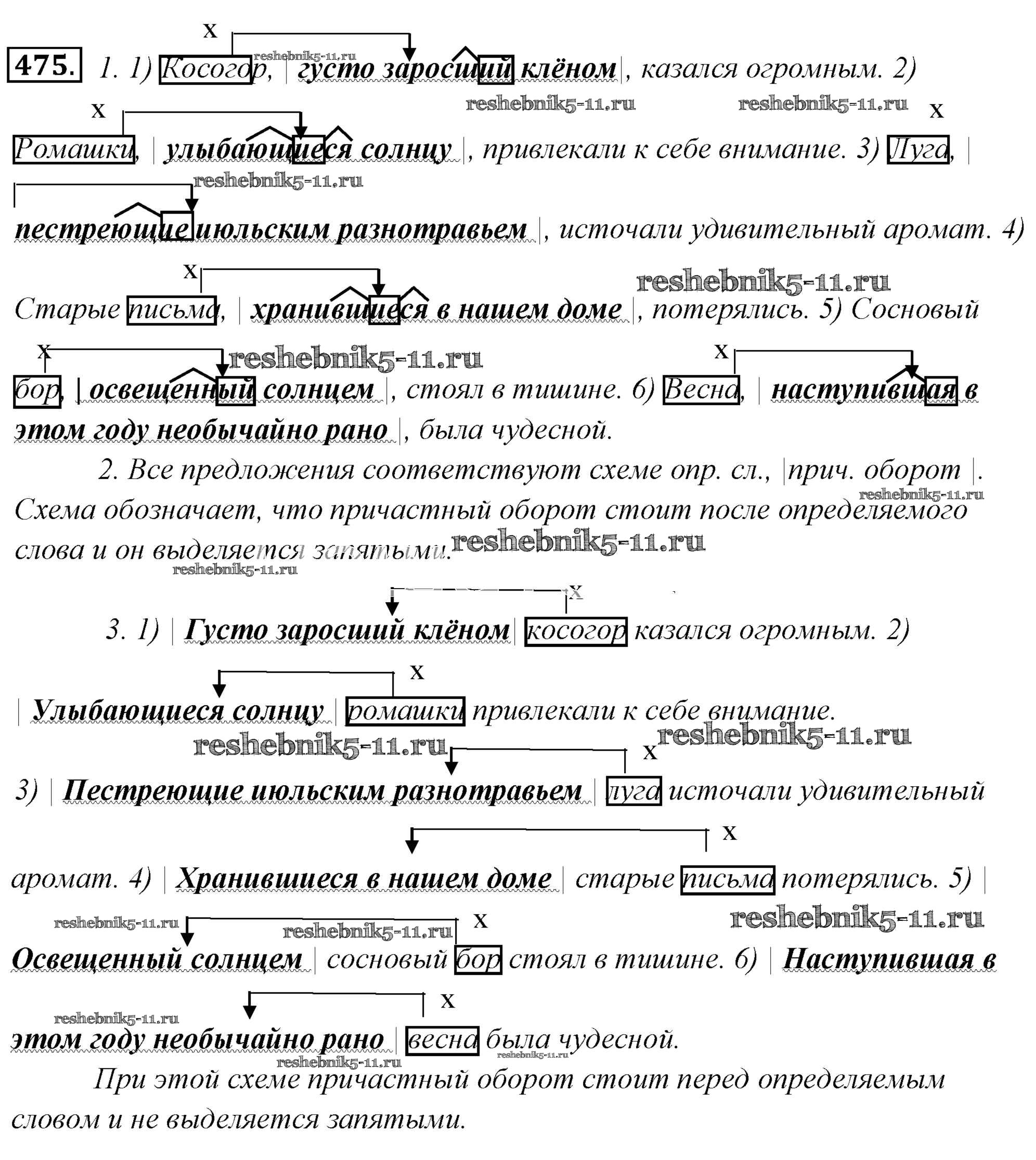 Готовая домашняя работа с ответами по Русскому языку за 6 класс Львова, Львов Учебник Часть 1, 2 Мнемозина 2013 ФГОС - Упражнения 475