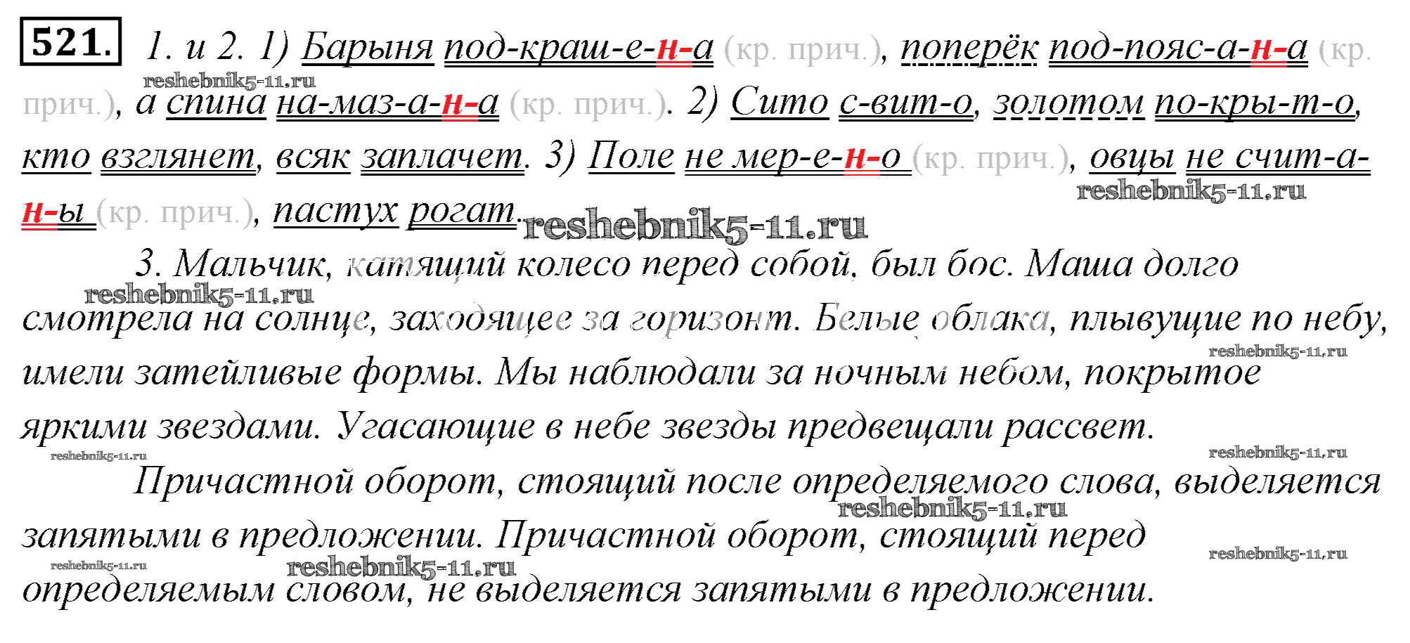 Готовая домашняя работа с ответами по Русскому языку за 6 класс Львова, Львов Учебник Часть 1, 2 Мнемозина 2013 ФГОС - Упражнения 521