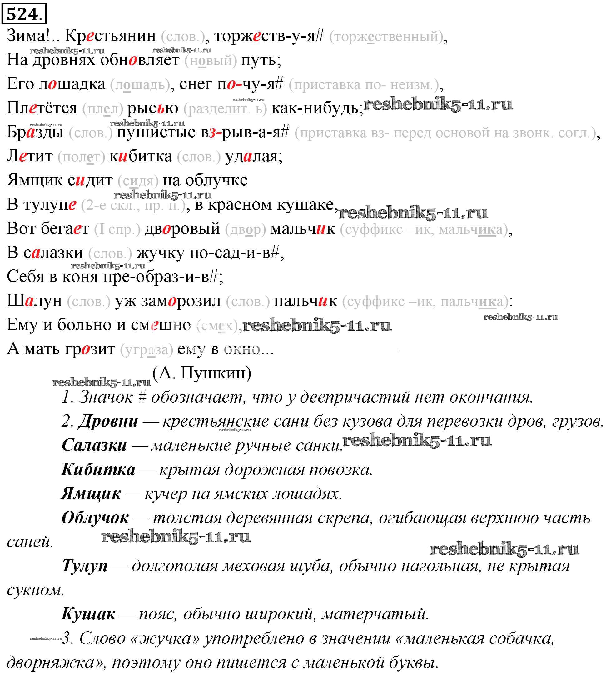 Готовая домашняя работа с ответами по Русскому языку за 6 класс Львова, Львов Учебник Часть 1, 2 Мнемозина 2013 ФГОС - Упражнения 524