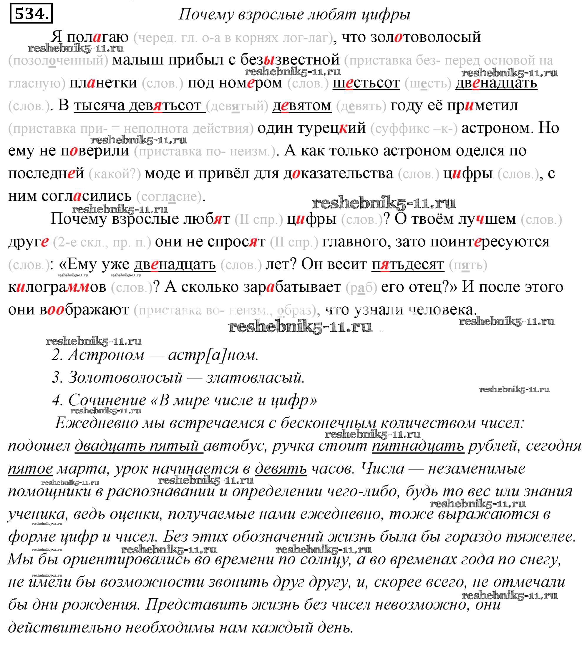 Готовая домашняя работа с ответами по Русскому языку за 6 класс Львова, Львов Учебник Часть 1, 2 Мнемозина 2013 ФГОС - Упражнения 534