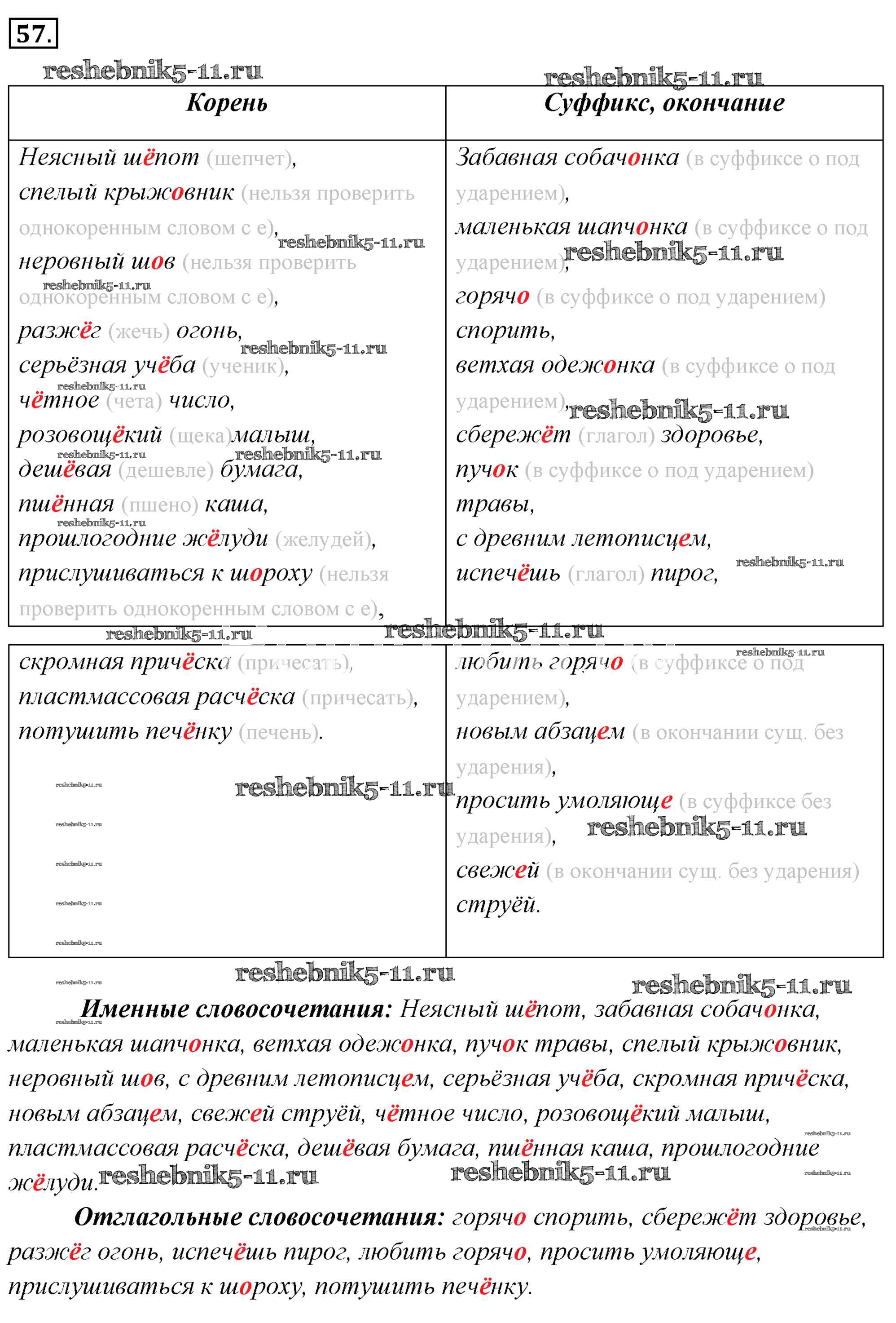 Готовая домашняя работа с ответами по Русскому языку за 6 класс Львова, Львов Учебник Часть 1, 2 Мнемозина 2013 ФГОС - Упражнения 57