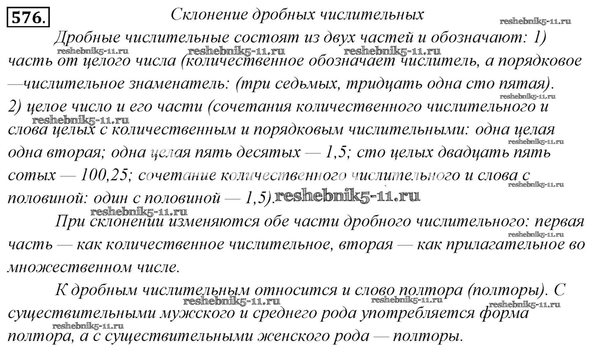 Готовая домашняя работа с ответами по Русскому языку за 6 класс Львова, Львов Учебник Часть 1, 2 Мнемозина 2013 ФГОС - Упражнения 576