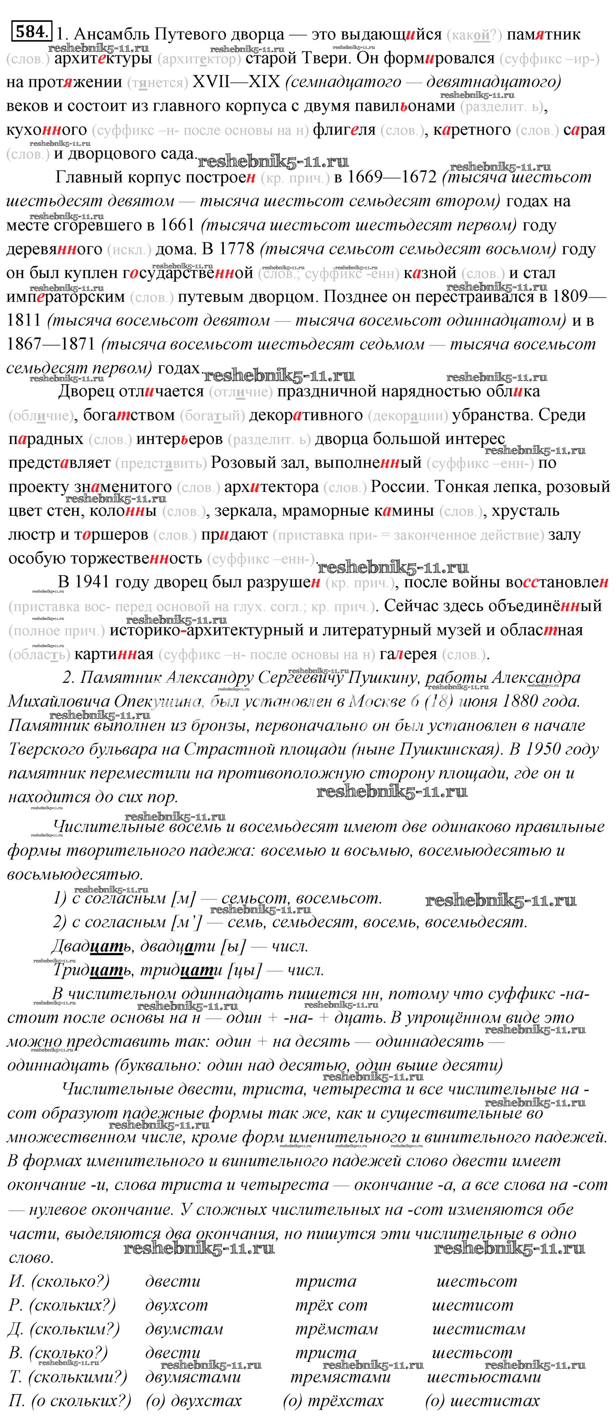 Русский язык за 6 класс Львова Учебник Мнемозина упражнение 584