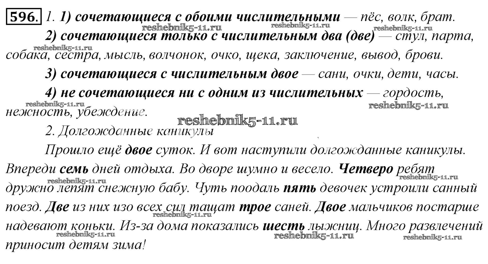 Готовая домашняя работа с ответами по Русскому языку за 6 класс Львова, Львов Учебник Часть 1, 2 Мнемозина 2013 ФГОС - Упражнения 596
