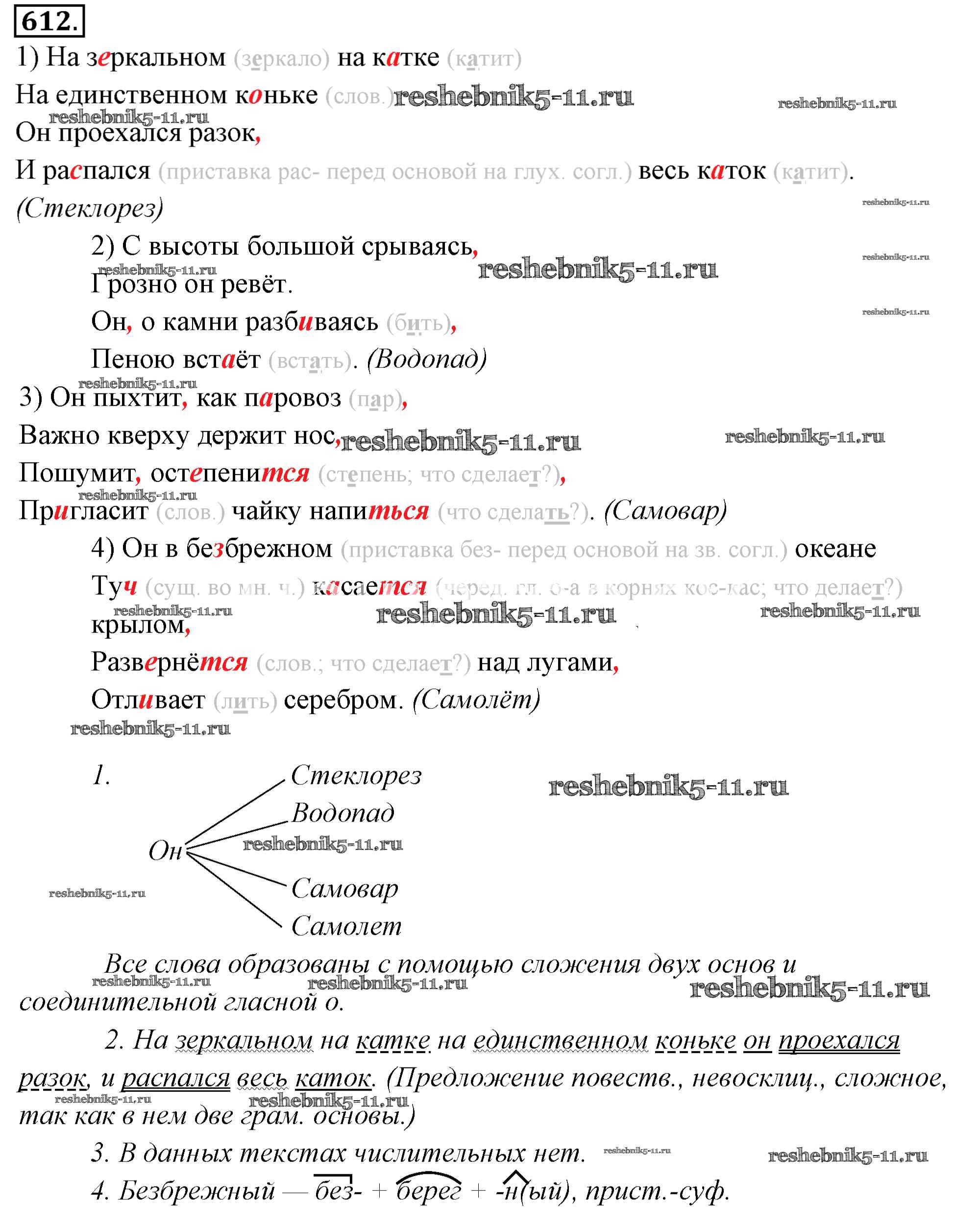 Готовая домашняя работа с ответами по Русскому языку за 6 класс Львова, Львов Учебник Часть 1, 2 Мнемозина 2013 ФГОС - Упражнения 612