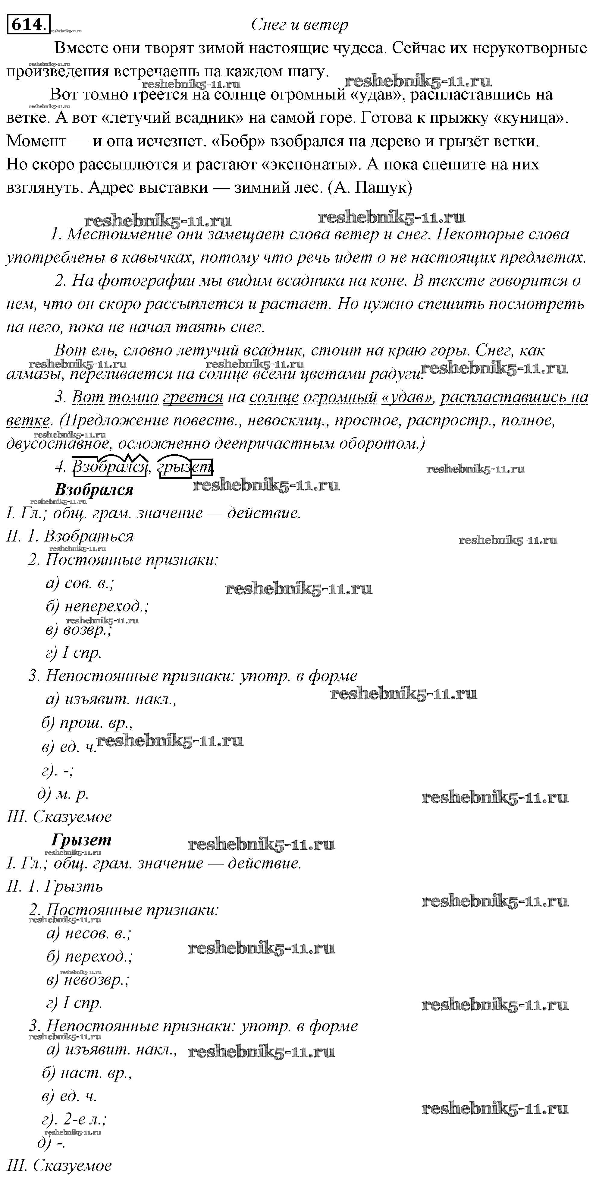 Готовая домашняя работа с ответами по Русскому языку за 6 класс Львова, Львов Учебник Часть 1, 2 Мнемозина 2013 ФГОС - Упражнения 614