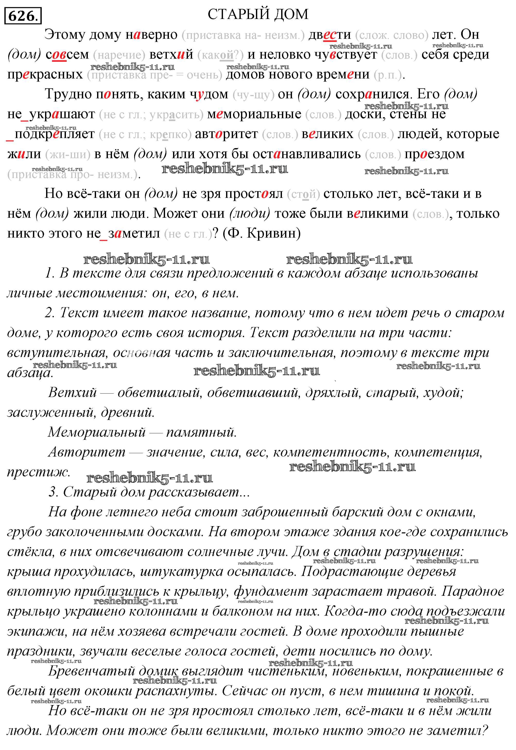 Готовая домашняя работа с ответами по Русскому языку за 6 класс Львова, Львов Учебник Часть 1, 2 Мнемозина 2013 ФГОС - Упражнения 626
